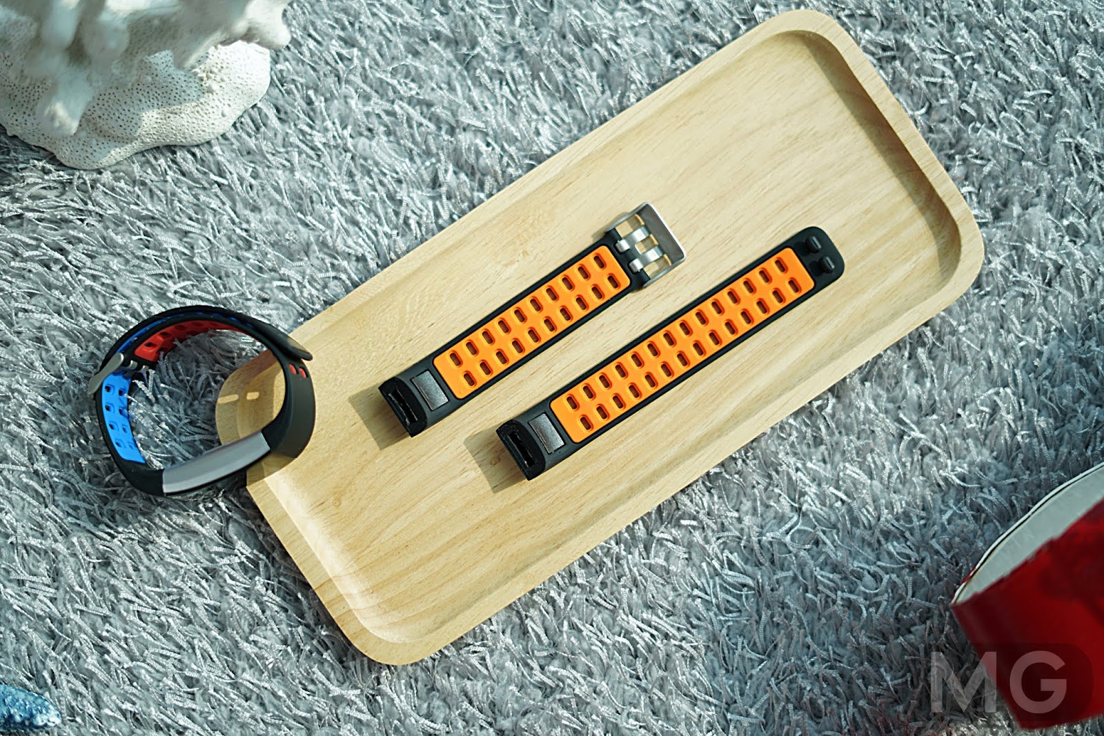 반면 전체적인 디자인을 보면, 스마트 밴드 치고는 약간 두툼한 디자인인 걸 알 수 있습니다. 메탈릭한 컬러는 남성적인 느낌을 줘서 여성분들에게는 마이너스일 수도 있겠네요.
