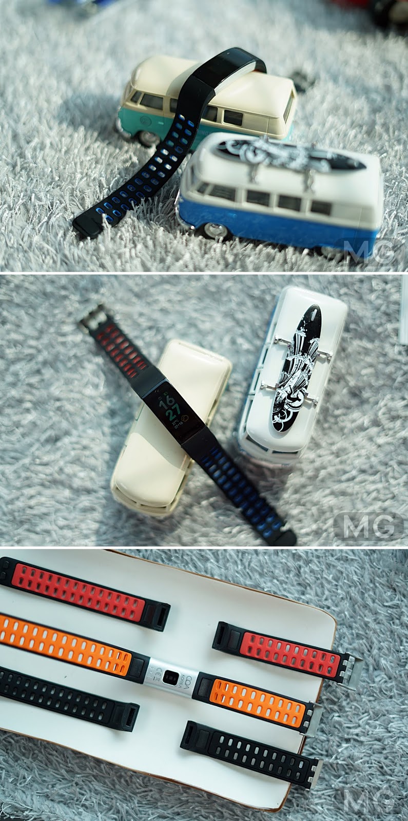 사실 스마트밴드는 디자인이 다 거기서 거기이기도 하고, 기능은 판매 페이지나 리뷰를 알아보고 자신에게 맞는 걸 구입하는데, 밴드 재질감은 직접 착용했을 때 비로소 체감하는 부분이기 때문입니다.