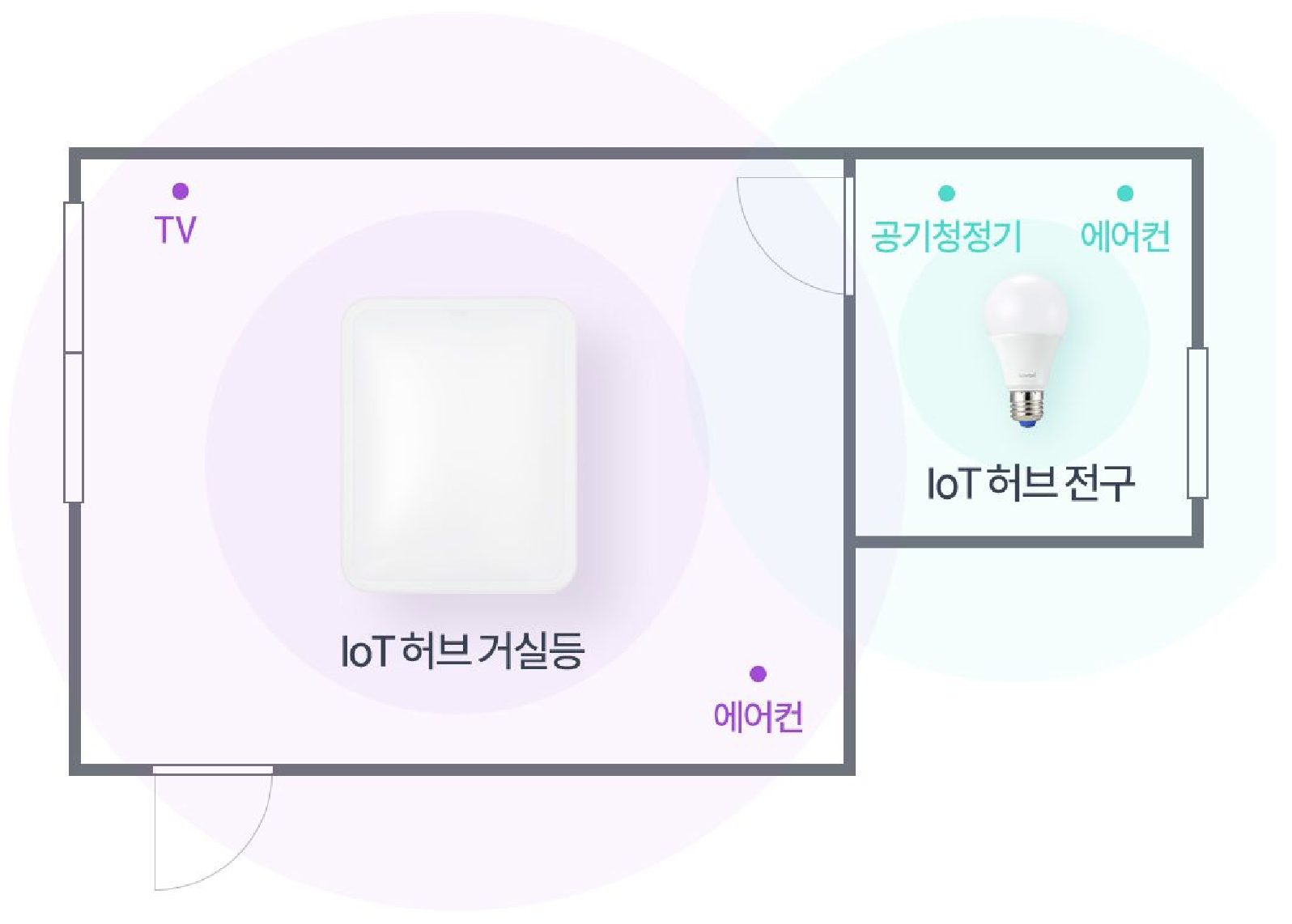 IoT 허브 전구를 방에 설치하게 되면 연동이 되어서 공간 확장이 가능해지기 때문입니다.