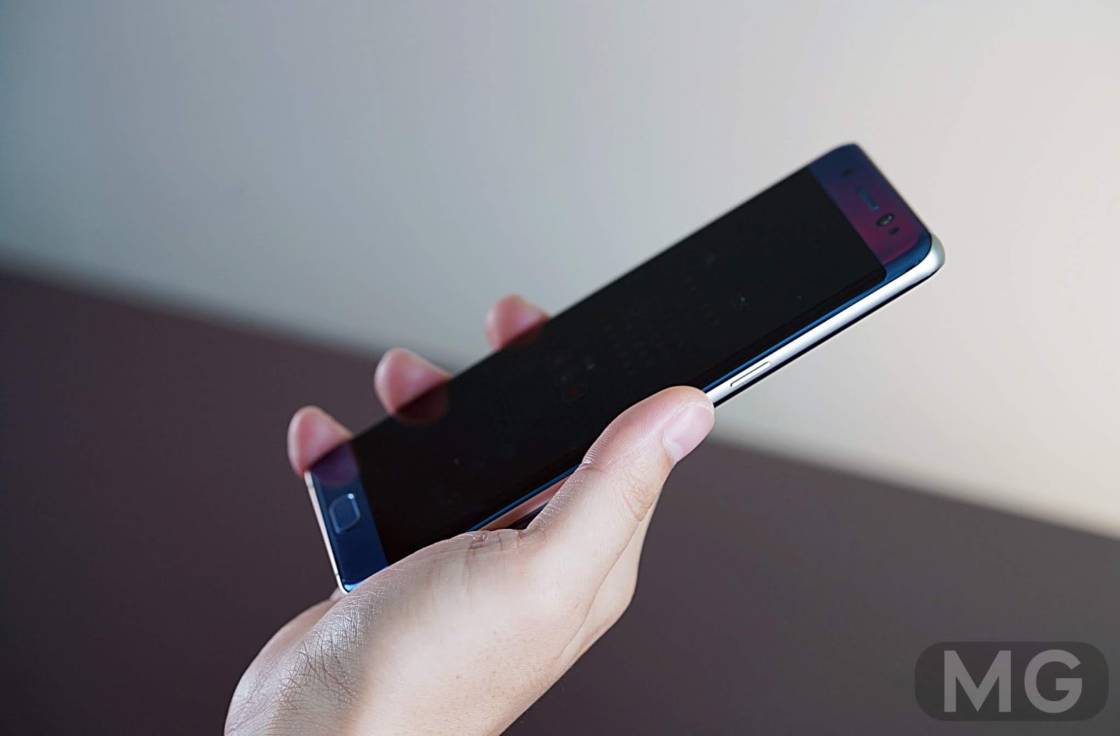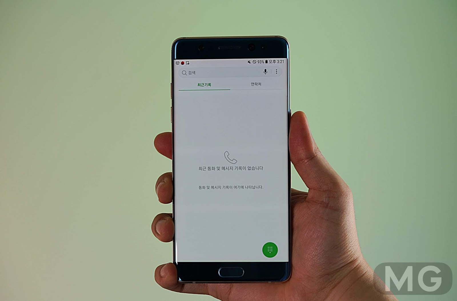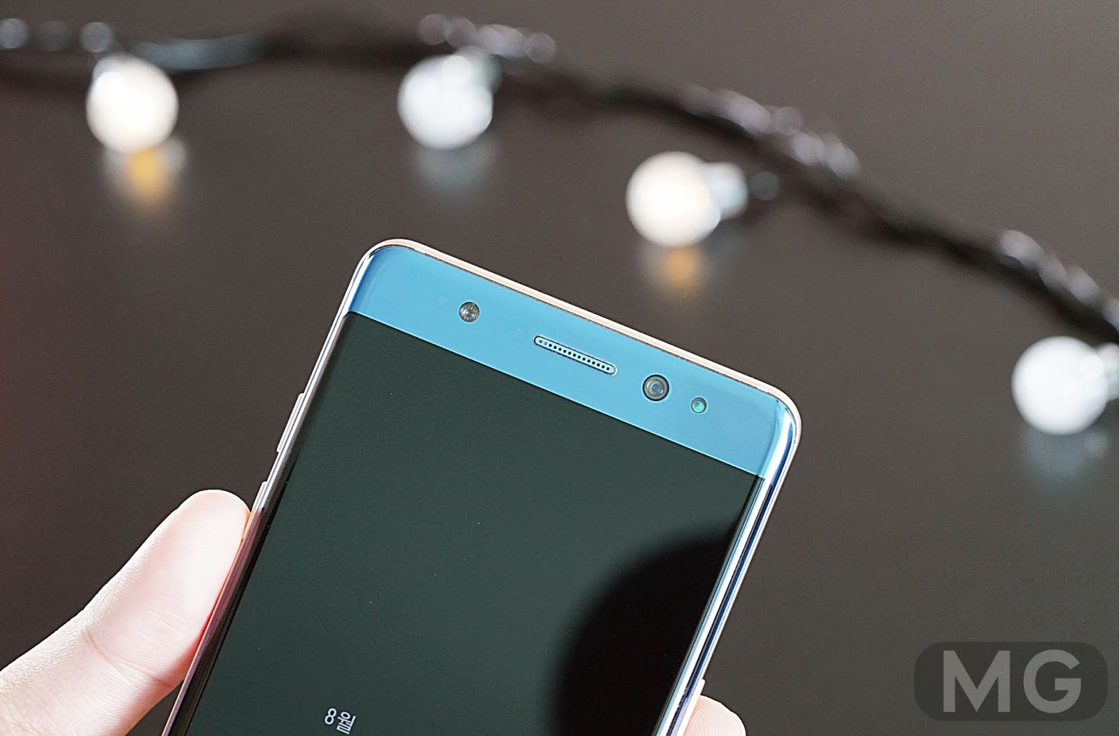 노트FE는 클래식한 느낌이 들고, 투톤 컬러가 인상적인 디자인이었습니다. 전면 홈 버튼은 깔끔하고 직관적인데, 측면 베젤이 매우 얇아서 기술적으로도 완성도가 높아 보이는 거죠.