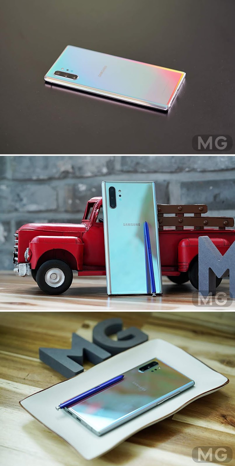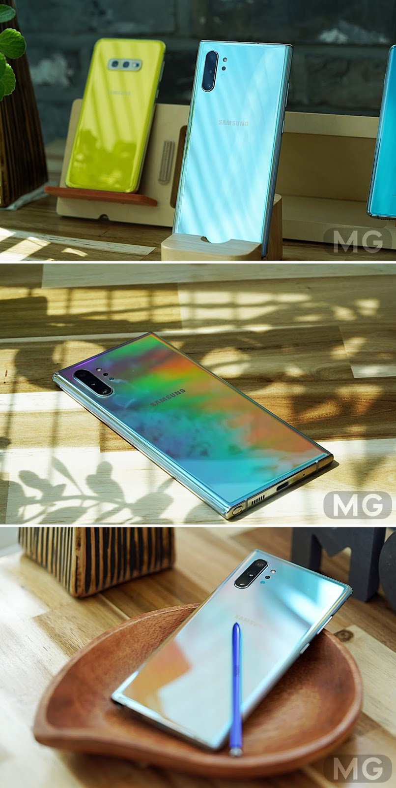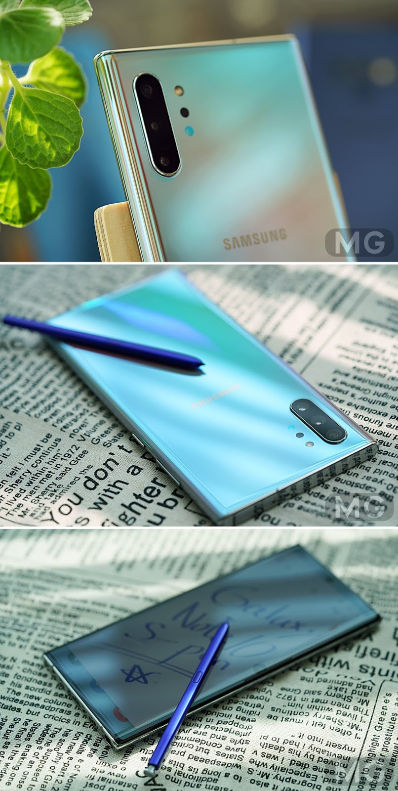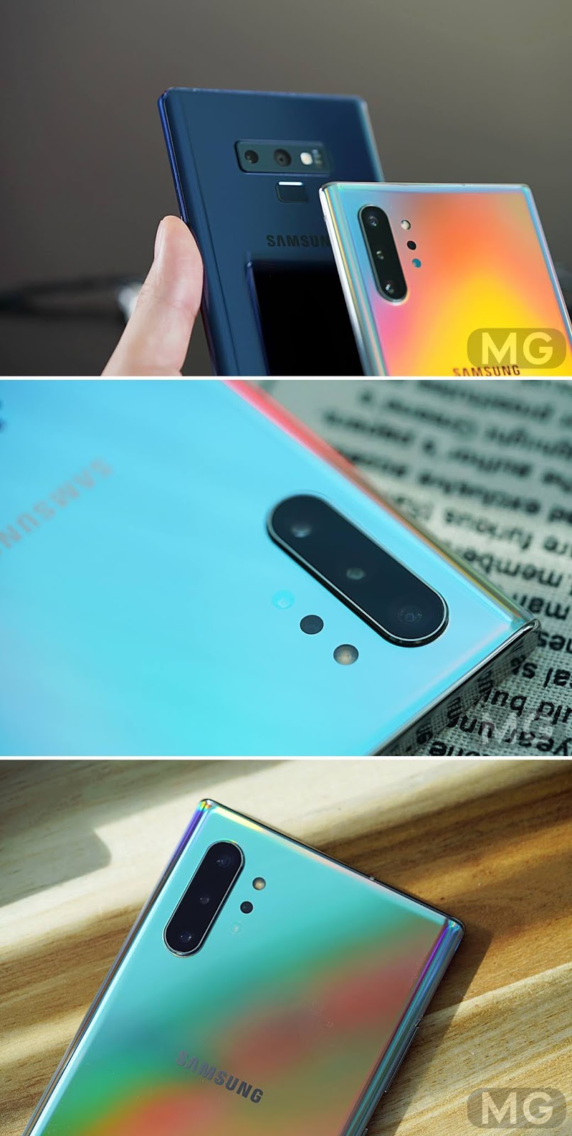 마지막으로 디자인 차이를 보자면, 노트10은 아우라 컬러가 정말 고급스럽더라고요. 배경이나 빛에 따라 느낌이 달라지니까 눈길을 끄는 거죠.