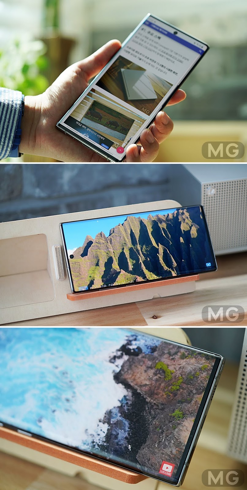 노트FE는 각진 모서리를 그대로 보여줘서 컨텐츠를 잘라먹지 않는 느낌이 좋았는데요. 16:9 비율에서는 궁극의 디자인이 아닐까 합니다.
