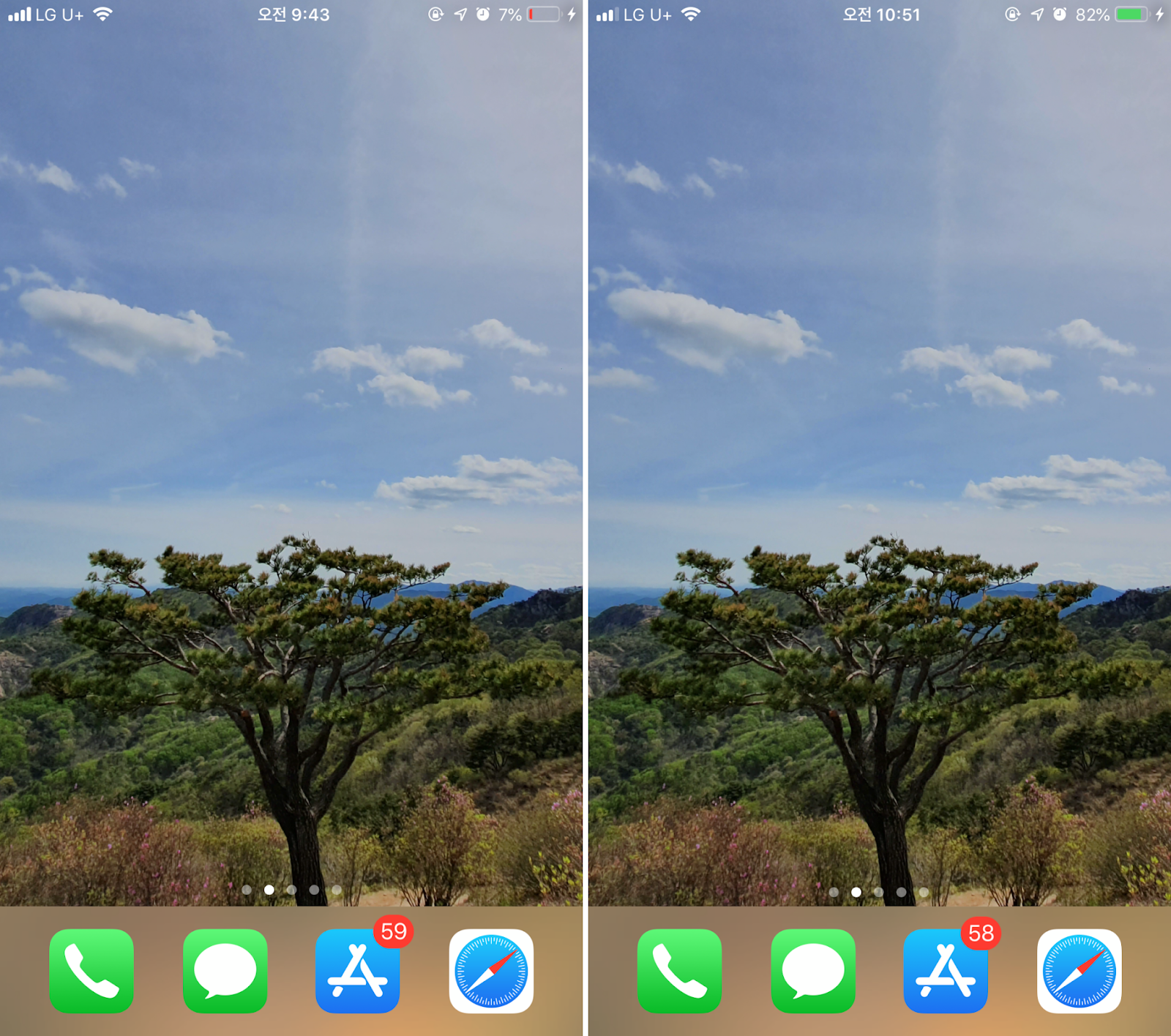 아이폰Xs(2658mAh)와 비슷한 배터리 용량을 가진 아이폰8 플러스(2691mAh)의 경우 1시간 동안 충전했을 때 배터리가 7%에서 82%까지 증가했습니다. 70% 전후부터는 안전을 위해 고속 충전이 제한된다는 점을 생각해보면, 공식 홈페이지의 설명과 어느 정도 유사한 충전 속도라고 볼 수 있습니다.