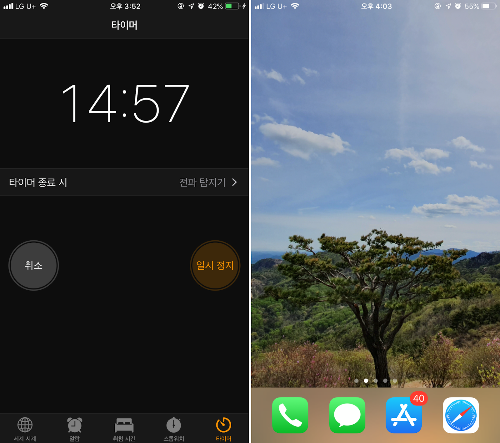 10분 충전 : 42% -> 55%
