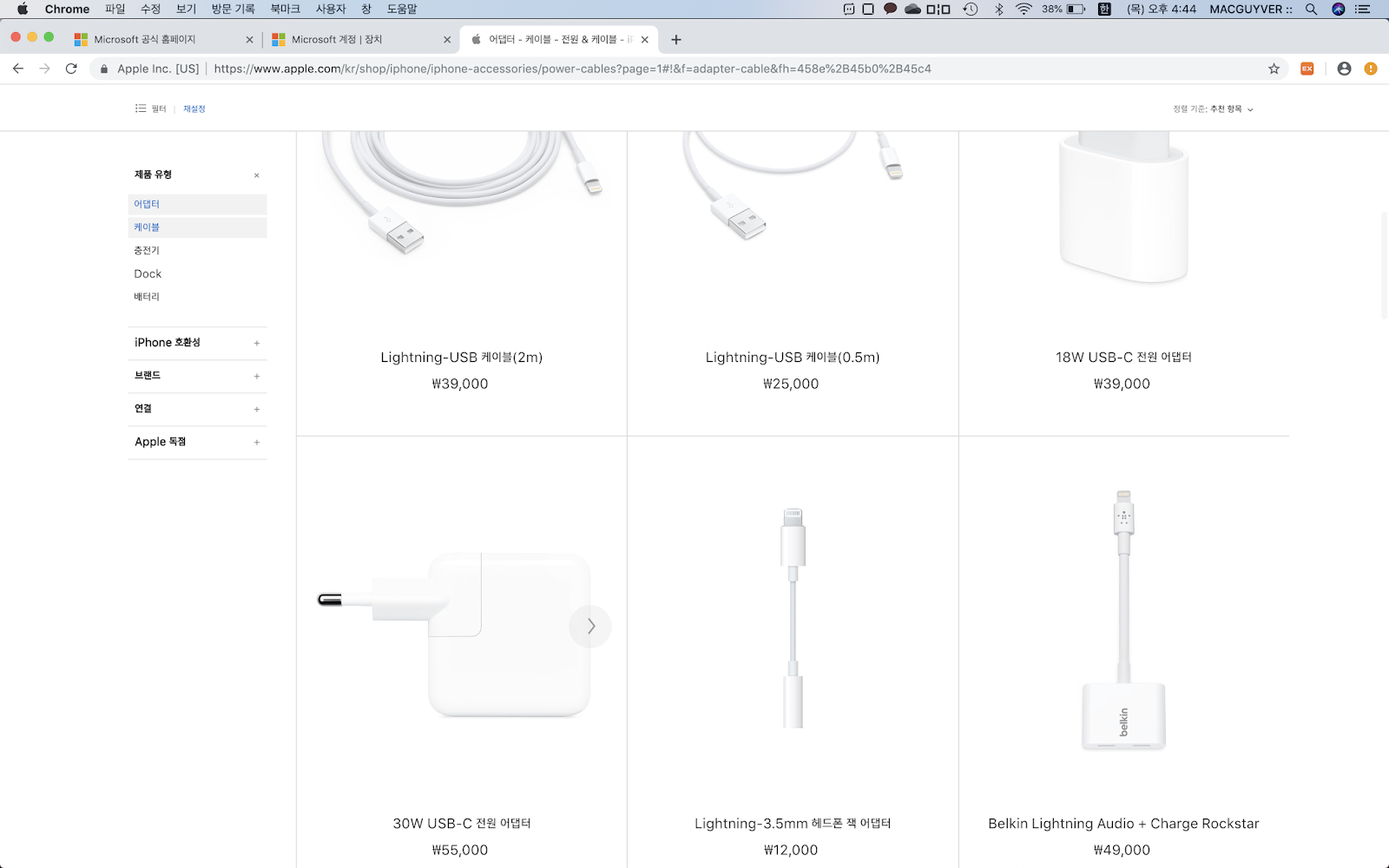 C-라이트닝이라는 이 독특한 정품 케이블만 2만5천원이고, 30W짜리 맥북 정품 충전기는 5만5천원입니다. 즉, 8만원을 소비해야 아이폰을 고속충전할 수 있었던 거죠. 지금은 아이패드 프로용 18W 충전기도 나오긴 했지만요.