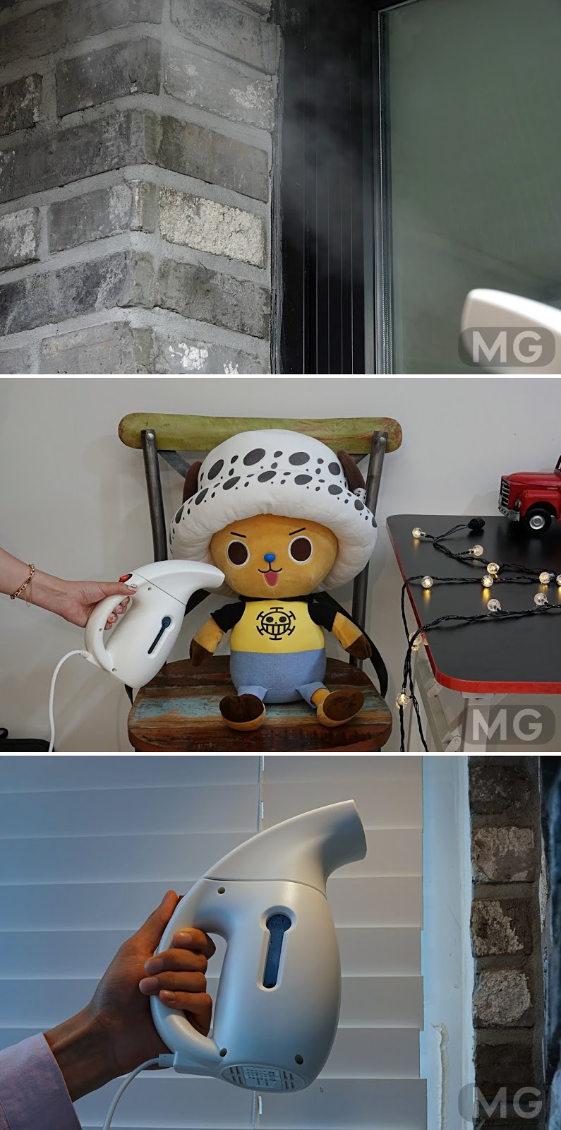 노빅 스팀다리미를 사용하다 보니까 스팀 파워를 조절할 수 없다는 점이 아쉬움으로 남았는데요. 사용 중에는 스팀 열기가 매우 뜨겁기 때문에 아이나 반려동물이 있는 가정이라면 주의가 필요한 것 같습니다.