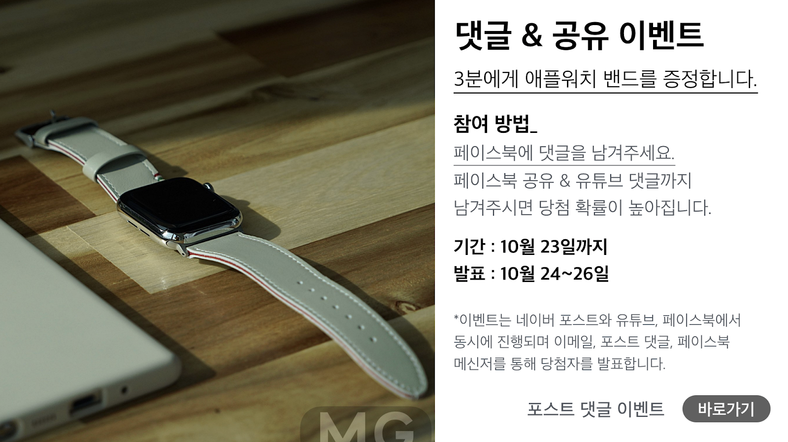 투르칸 애플워치 밴드를 3분에게 증정해드리는 이벤트가 진행 중인데요. 이 제품에 기대되는 점 2가지와 함께 댓글을 남겨주시면 됩니다.