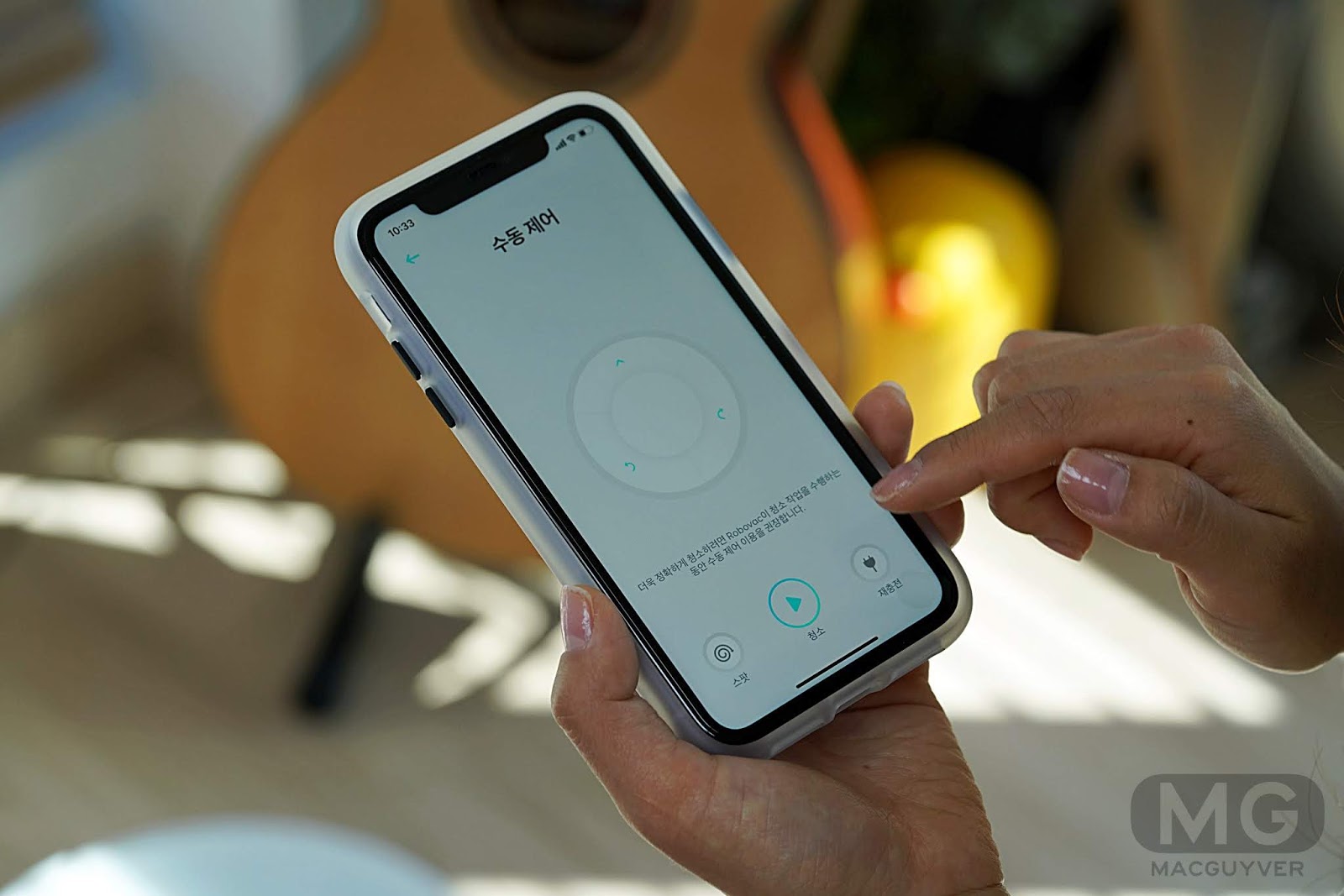 수동 제어는 말 그대로 이 물걸레 로봇청소기를 직접 컨트롤하는 기능인데, 바닥 노면에 따라 다른 것 같긴 한데, 달리는 속도가 자동 모드일 때보다 훨씬 빠릅니다.