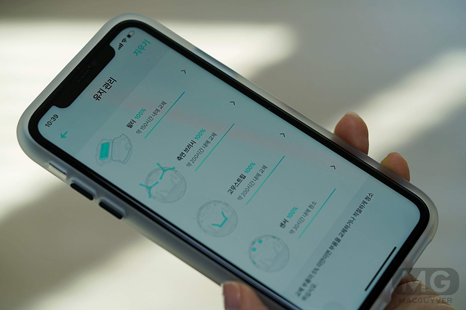 그리고 부품별로 언제 청소를 해줘야 하는지, 언제 교체해야 하는지 알려주는 것도 마음에 듭니다. 관리 주기와 사용 시간을 모두 표시해줍니다. 참고로 필터는 150시간이 교체 주기라고 합니다.