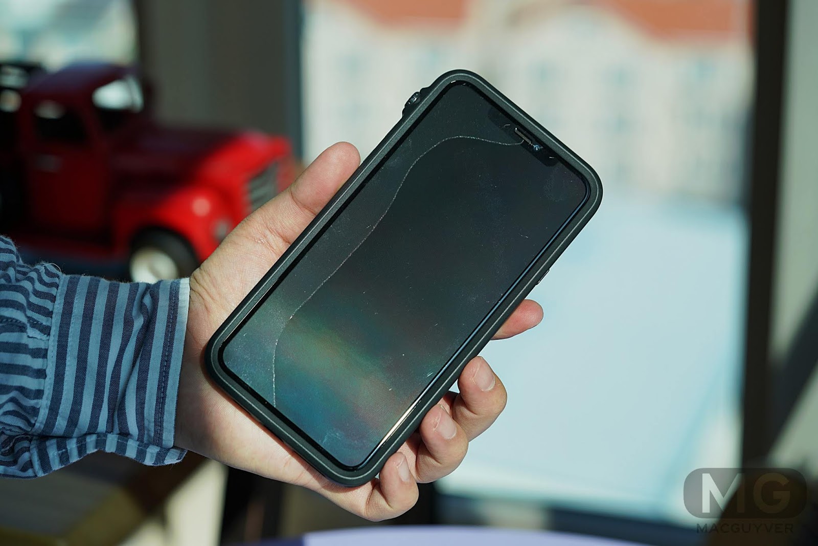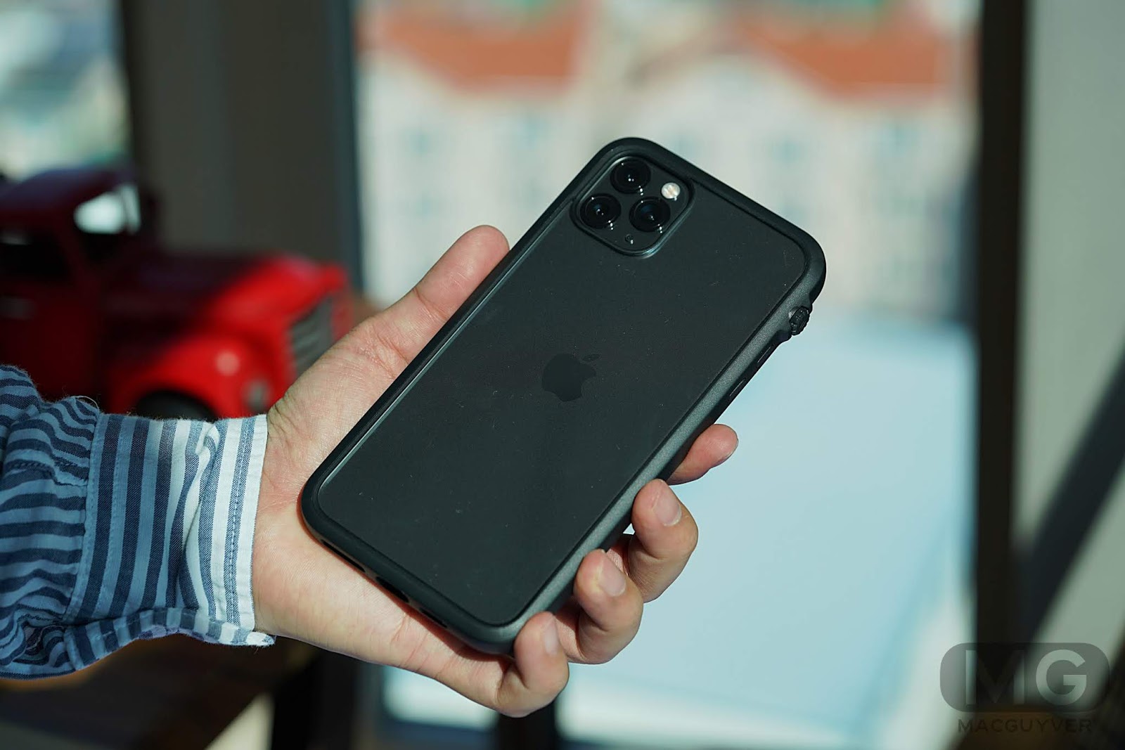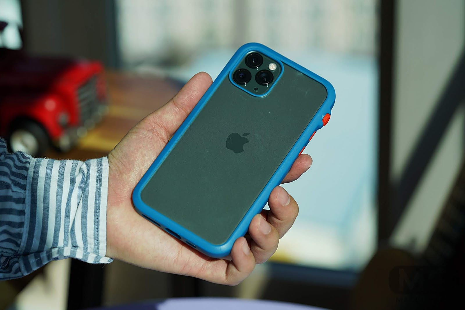 - 두께감보다는 상하좌우 테두리 부분이 두꺼워져서 특히 아이폰11 프로 맥스에 착용하면 엄청난 덩치를 자랑하는데요. 한 손으로 잡고 사용하기가 더 어려워진 느낌입니다.