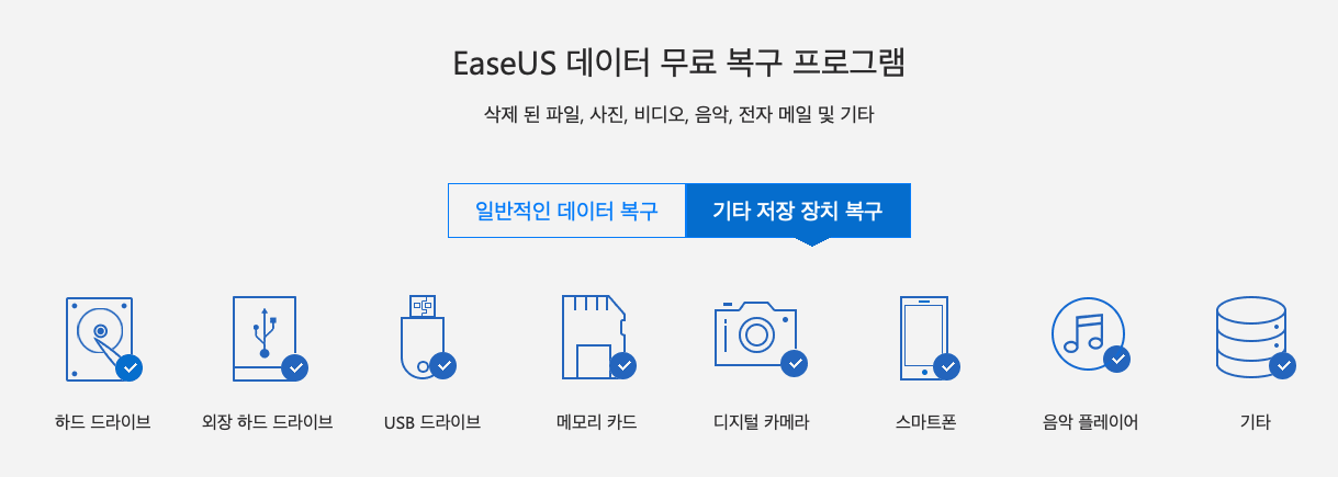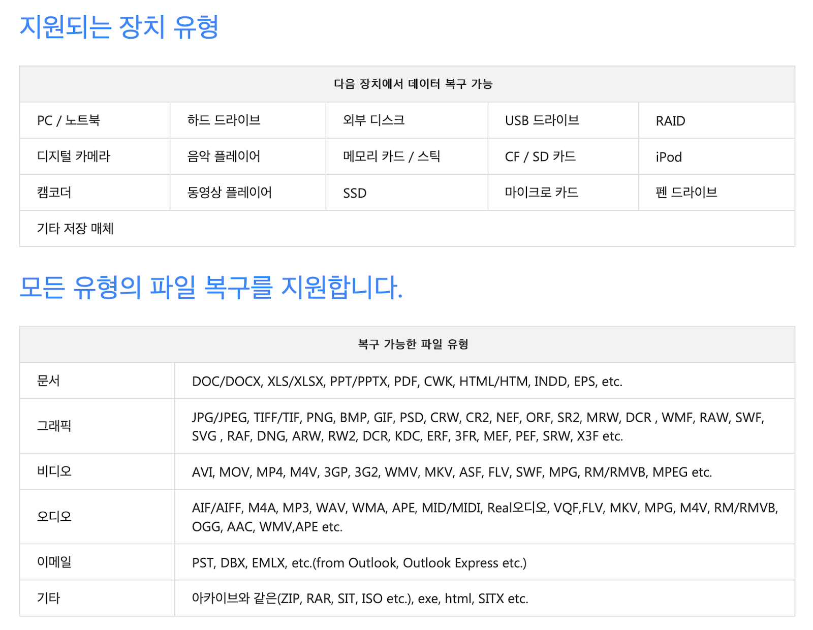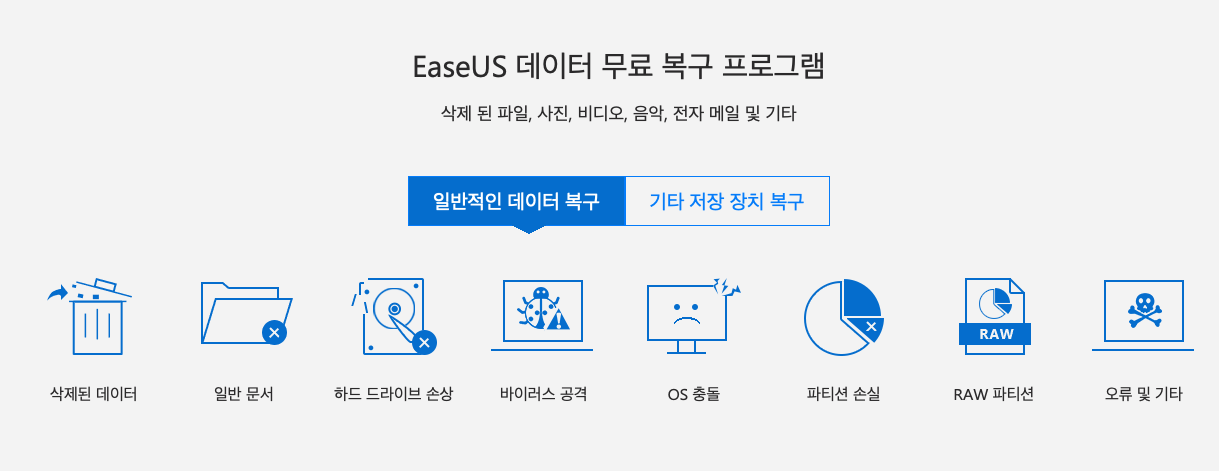 - 휴지통 비우기, 바이러스 공격, 소프트웨어 충돌, OS 문제 등 여러 이유로 손실된 데이터 완전 복구