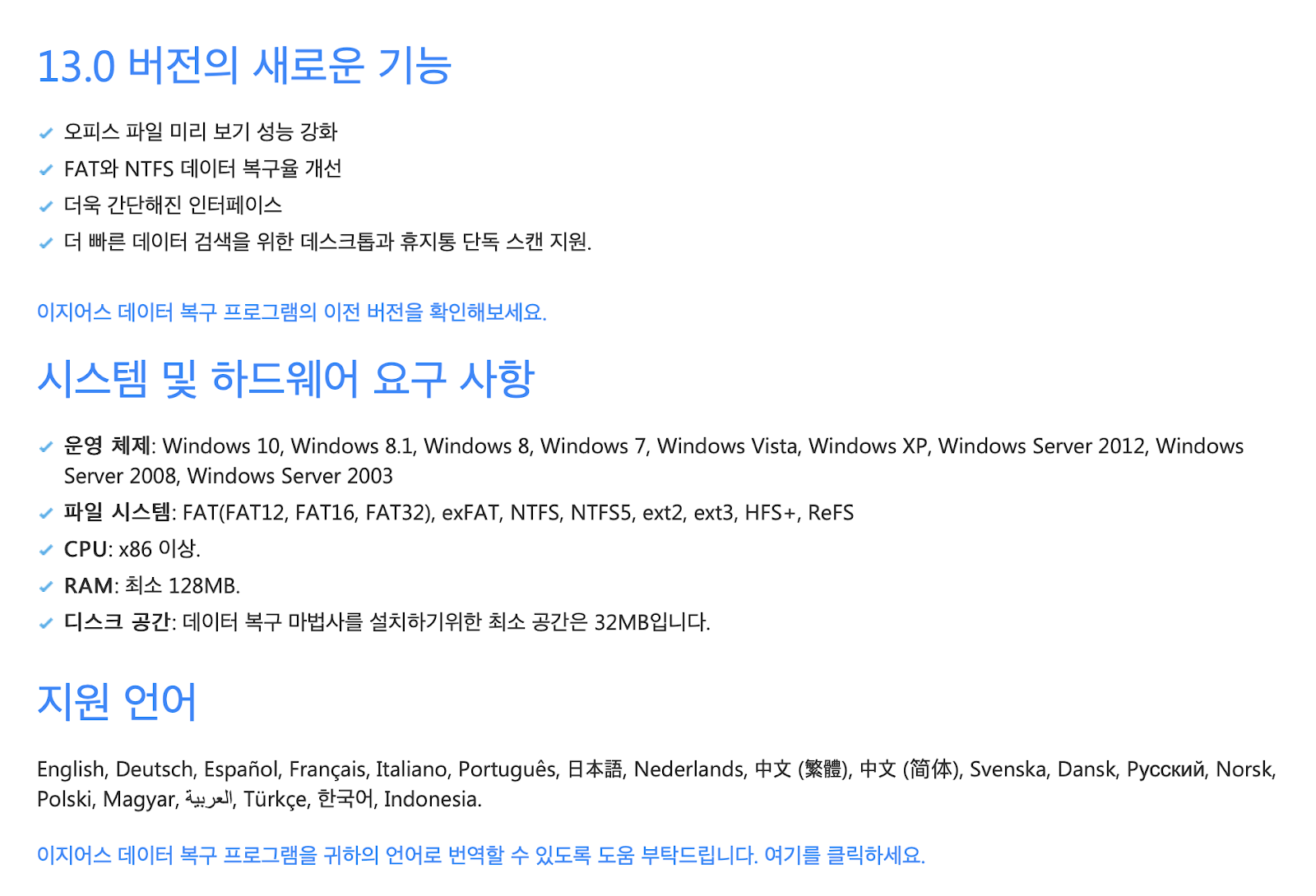 이지어스 데이터 복구 프로그램 맥버전에 대한 추가 정보들을 소개해드립니다.