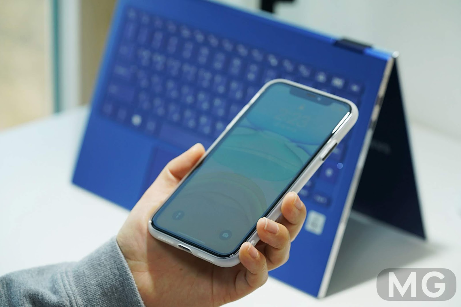 - 은은하게 비치는 아이폰 로고