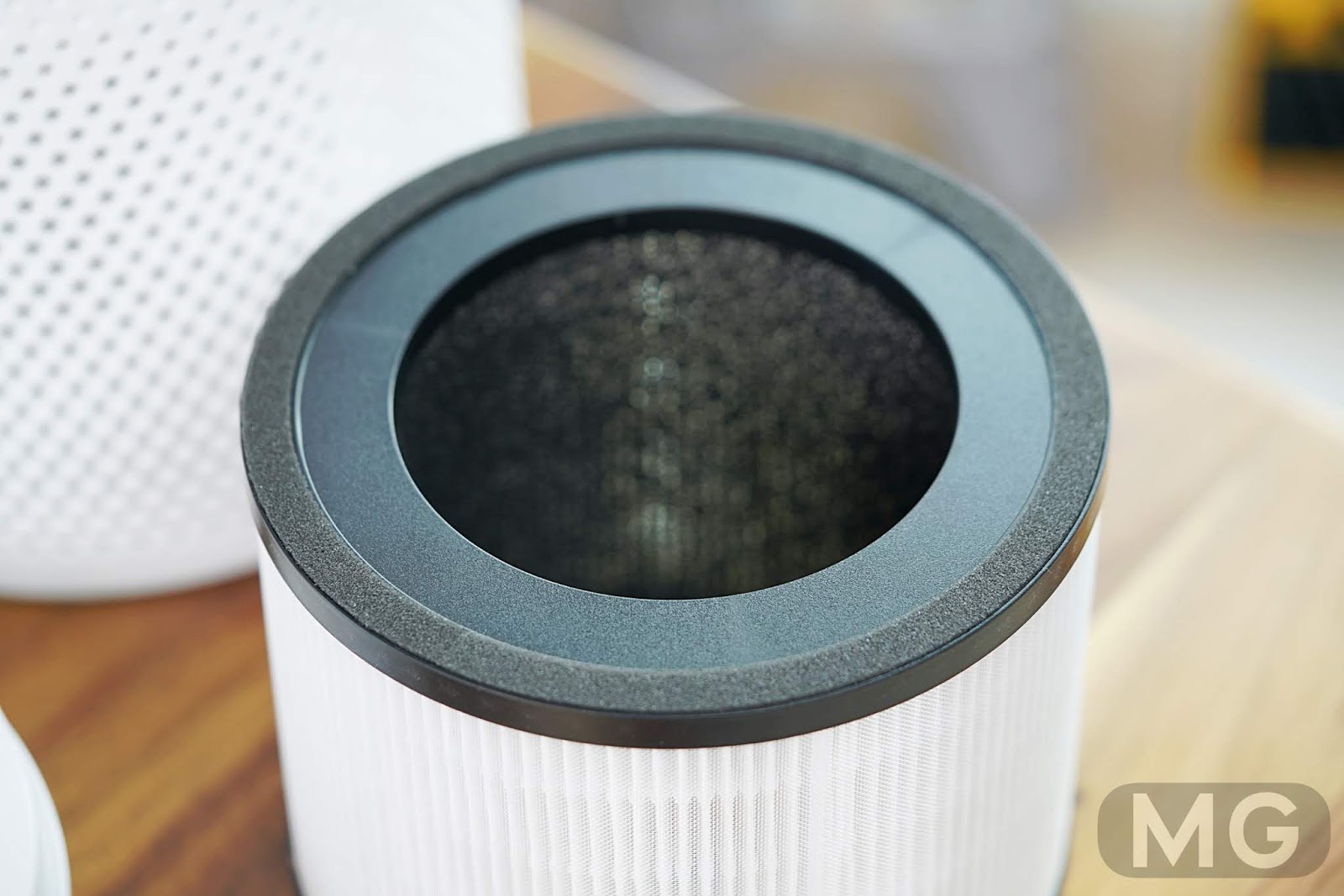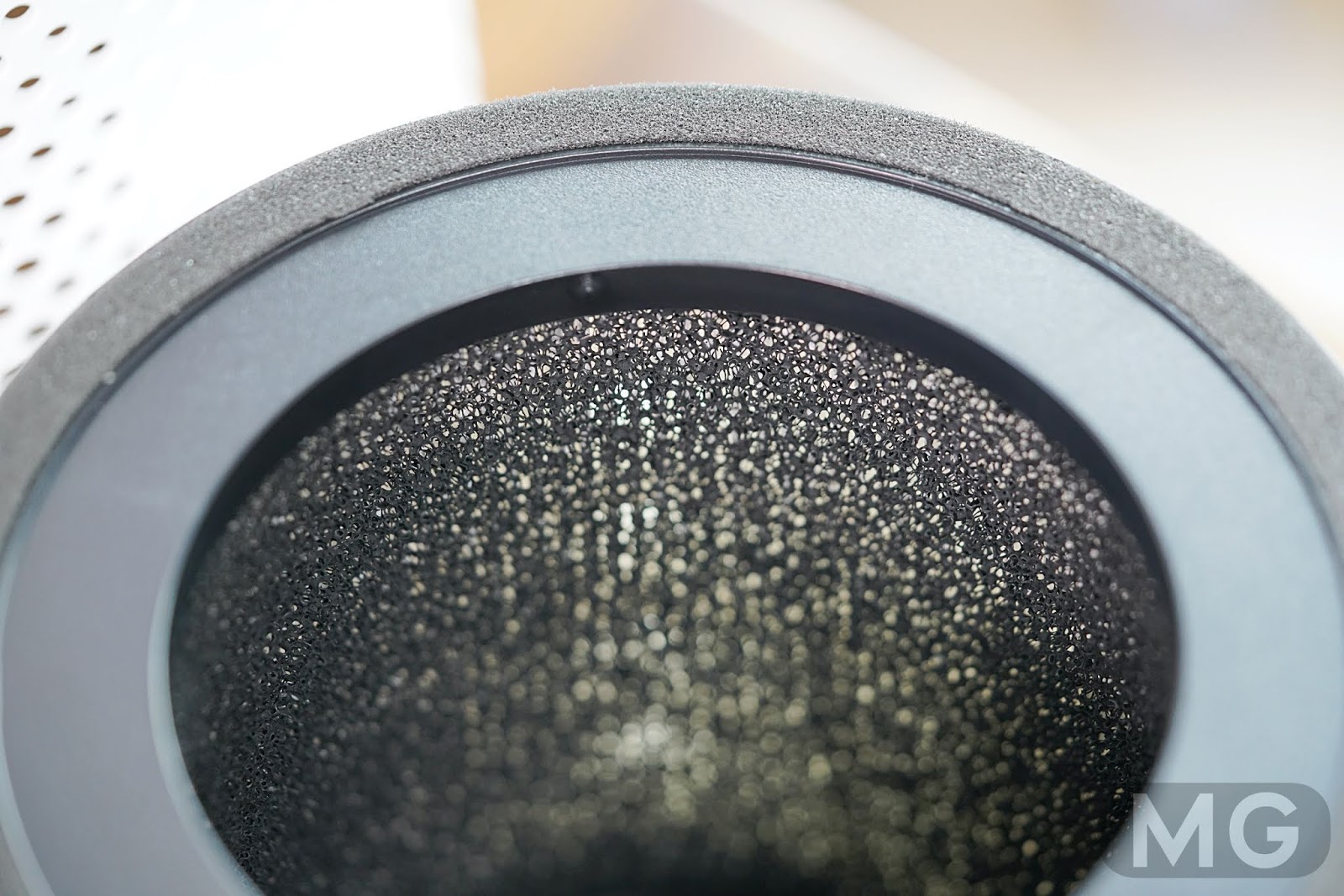 일반 필터 대비 공기 접촉면이 더 넓은 360도 원통형 필터를 적용해 효과적인 공기청정이 되는 것을 볼 수 있었습니다.