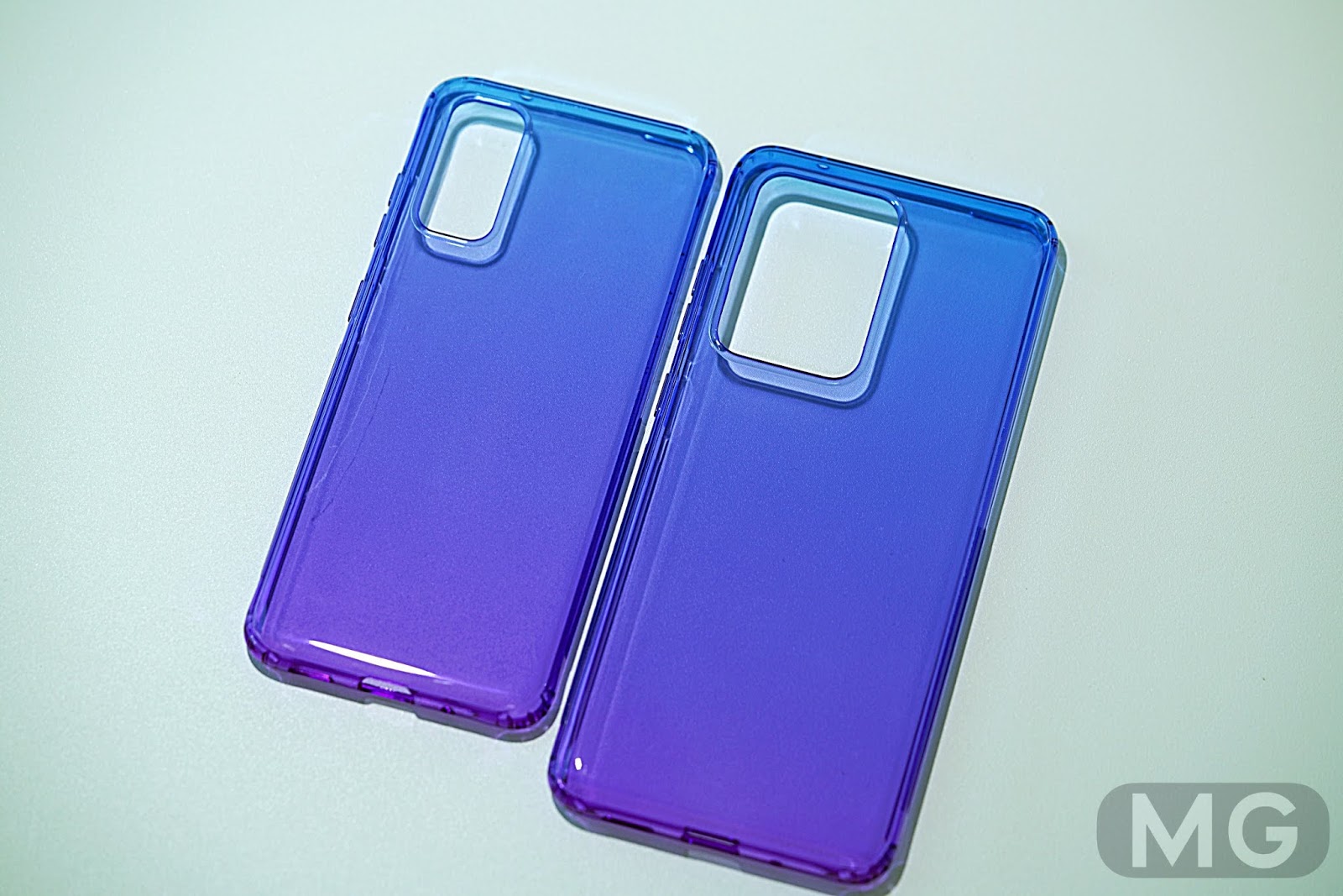 케이스를 겹쳐본 결과, 갤럭시S20은 갤럭시S20+와 비교해서 여유로울 정도로 크기 차이가 났습니다.