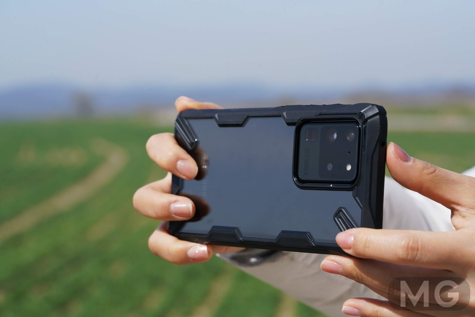물론 최대한 가볍게 만들었지만 무게는 31.4g으로 갤럭시S20 울트라에 씌우면 무게감이 제법 있는 편인데요.