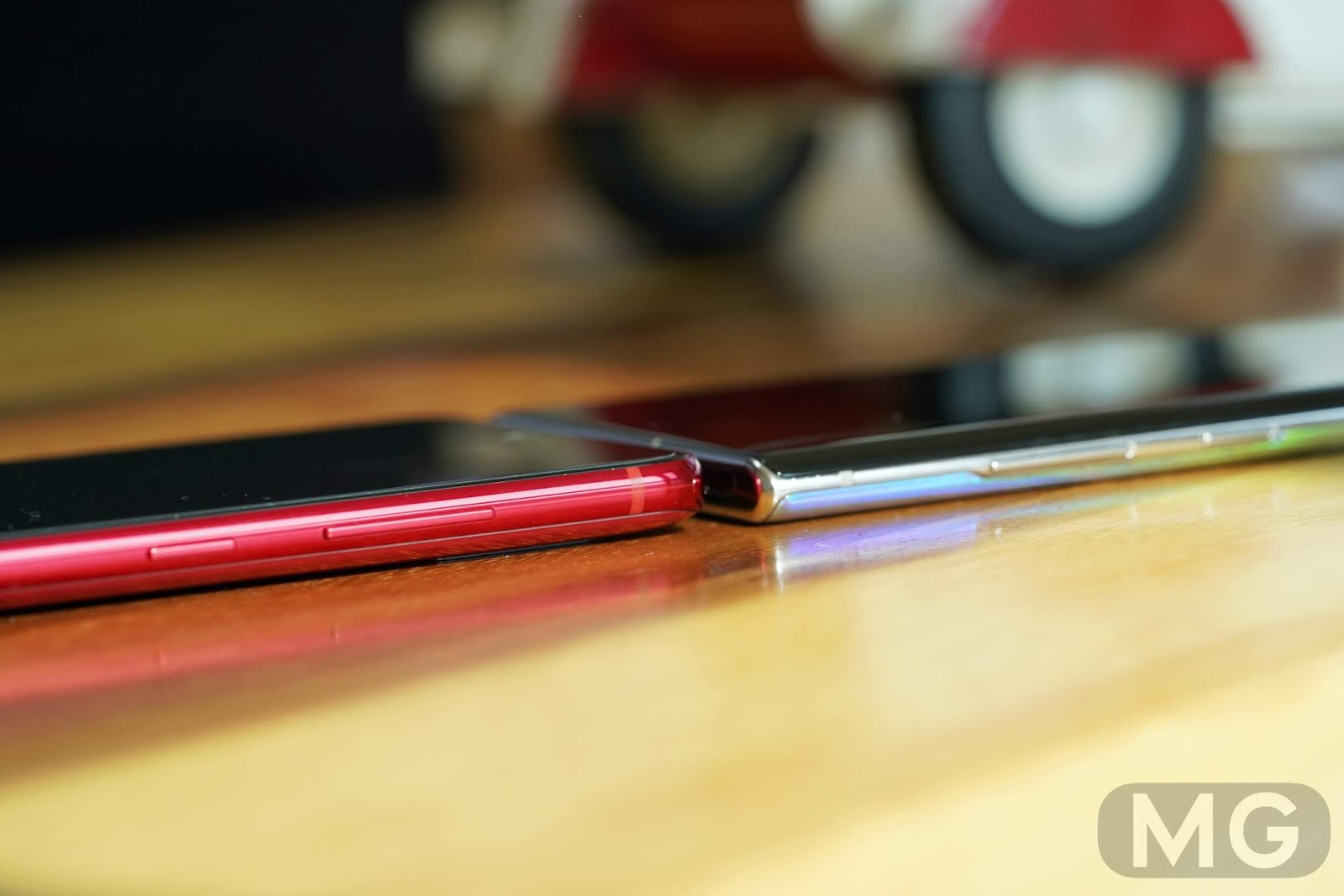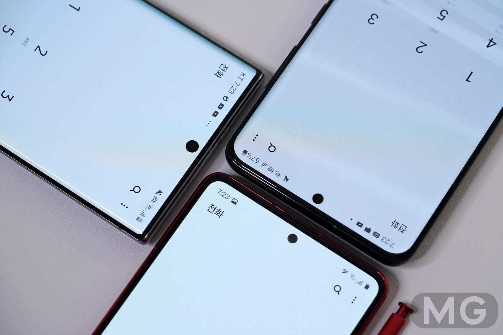 또 베젤이 살짝 더 두꺼워서 90%를 넘었던 갤노트10+와 다르게 86.95%로 줄어들기도 했는데요.
