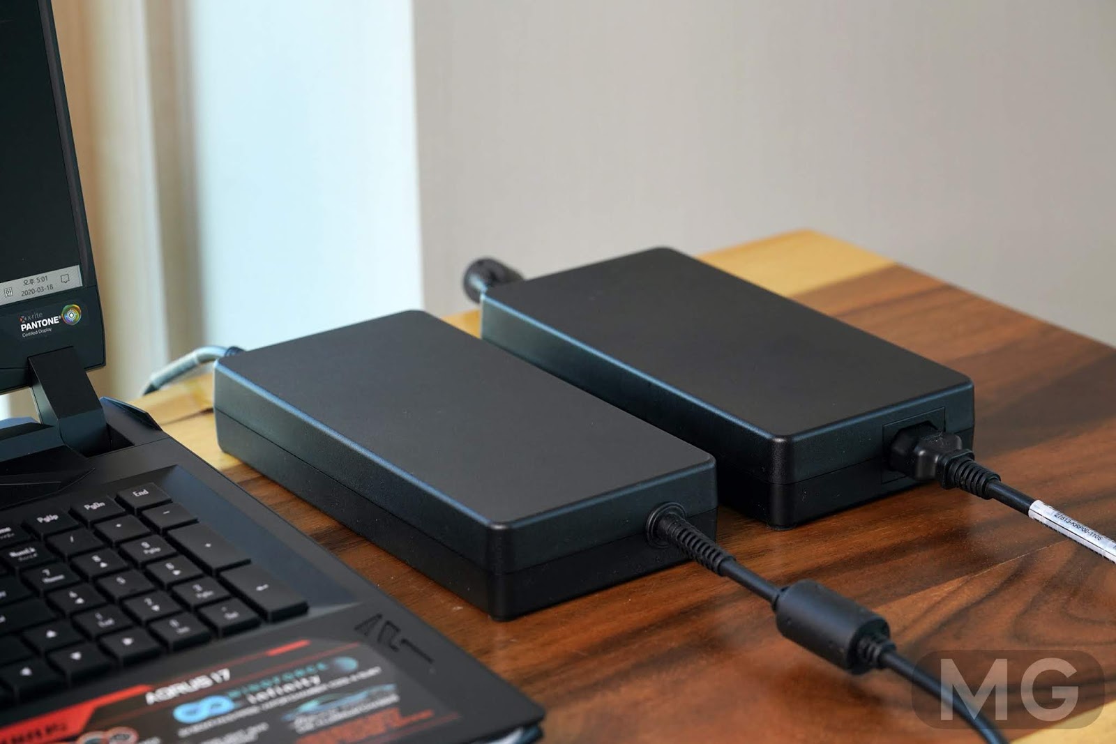 물론 어댑터 하나만 있어도 제 성능을 똑같이 내긴 합니다. 그럼에도 기가바이트 노트북은 두배 정석 세팅을 고수했는데요. 전력 관리 설계에 자부심이 느껴지는 대목입니다.