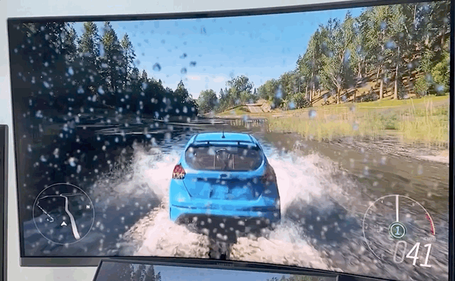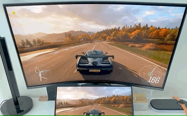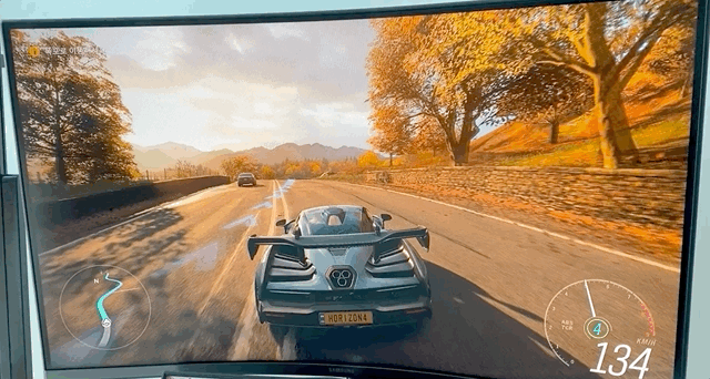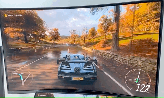 그러니까 대부분의 모니터는 끝으로 갈수록 더욱 멀어지고 거리감이 느껴지는데, 1000R이라는 엄청난 곡률로 즐기는 컨텐츠는 멀리 가는 개념이 아니라 좌우로 이동하기만 하는 느낌이었거든요.