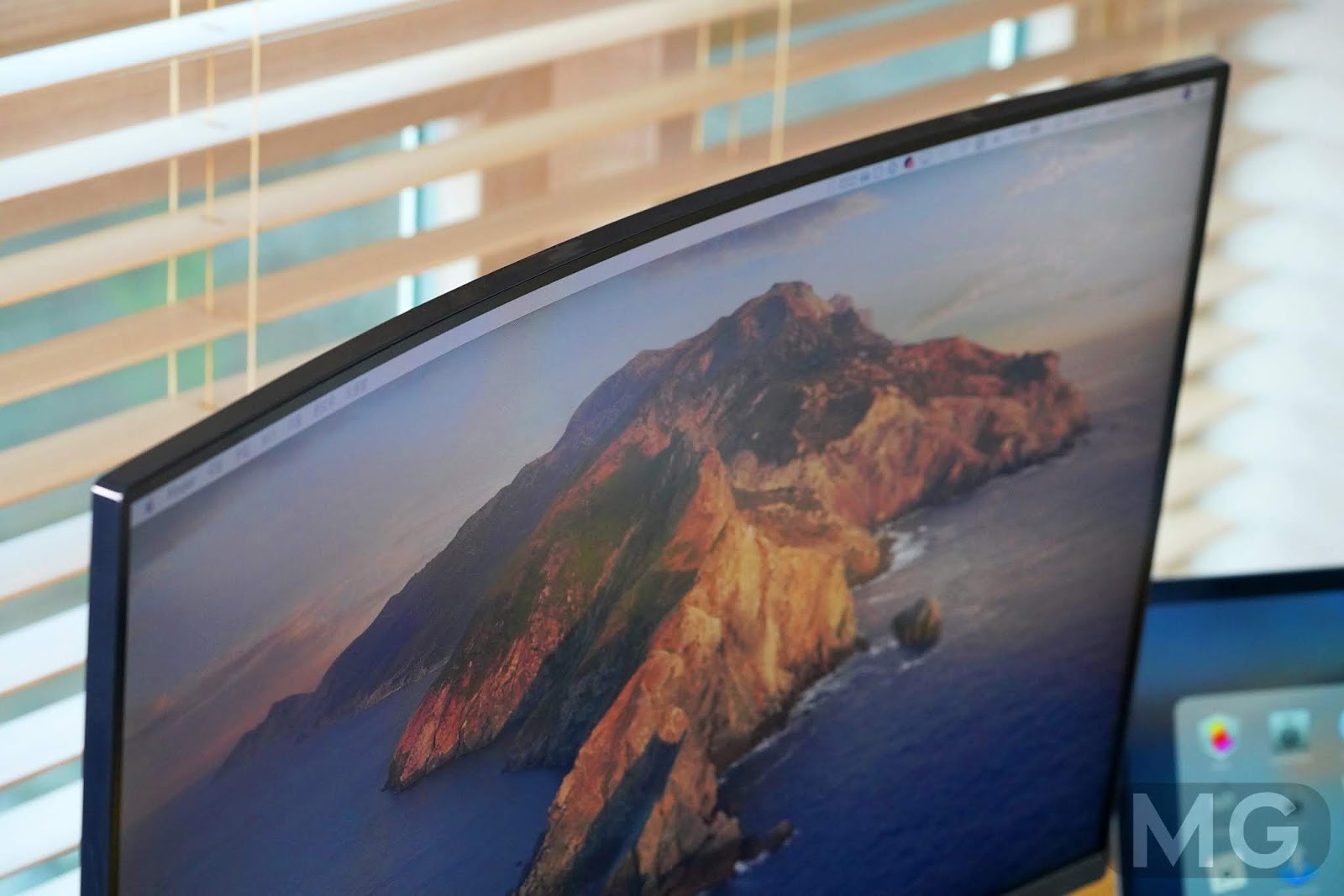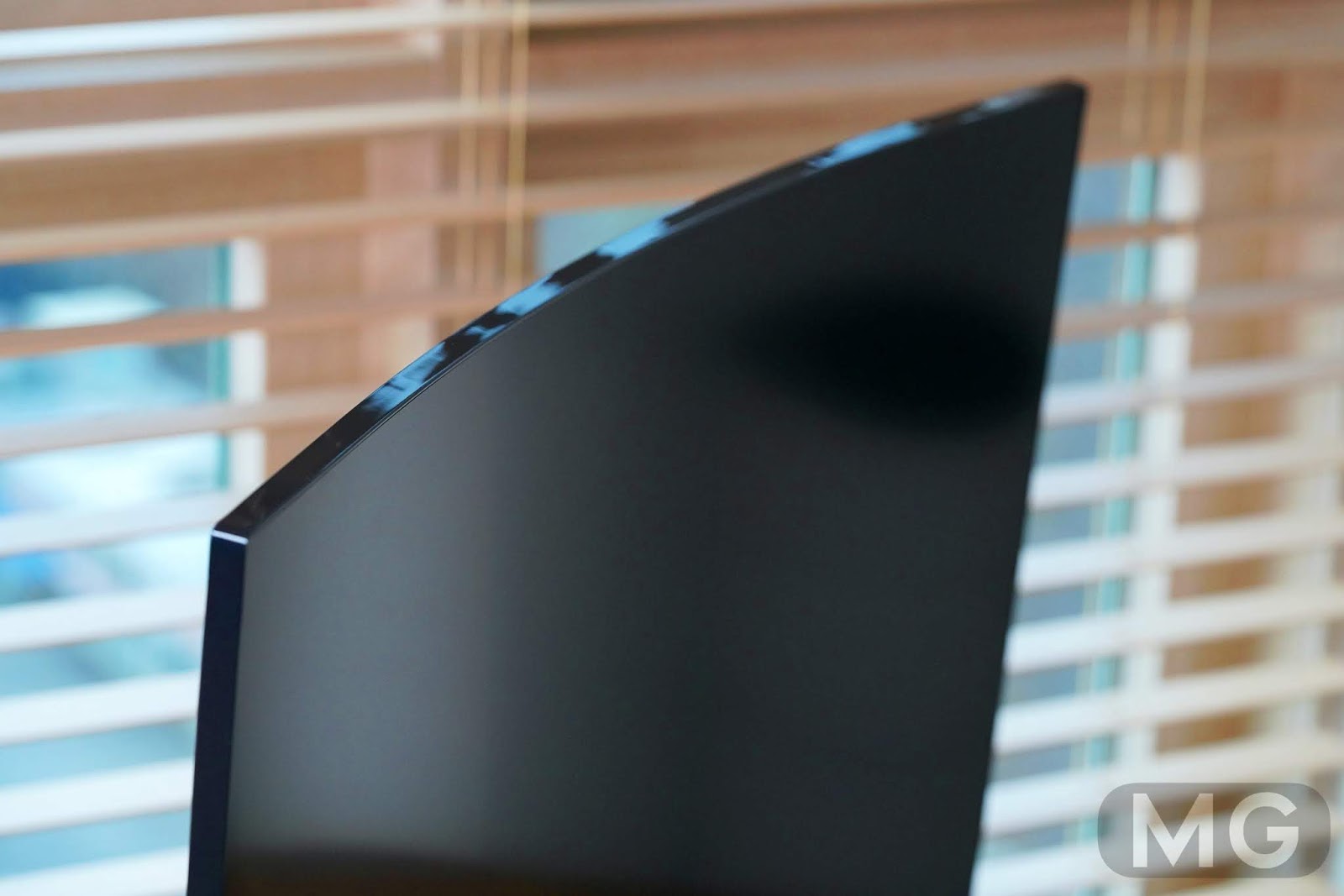 측면에서 볼 때 곡률은 과도하지 않았고, 정면에서 화면을 볼 때는 나름 적당한 곡률로 몰입도를 더해주고 눈을 편하게 해주더라고요.
