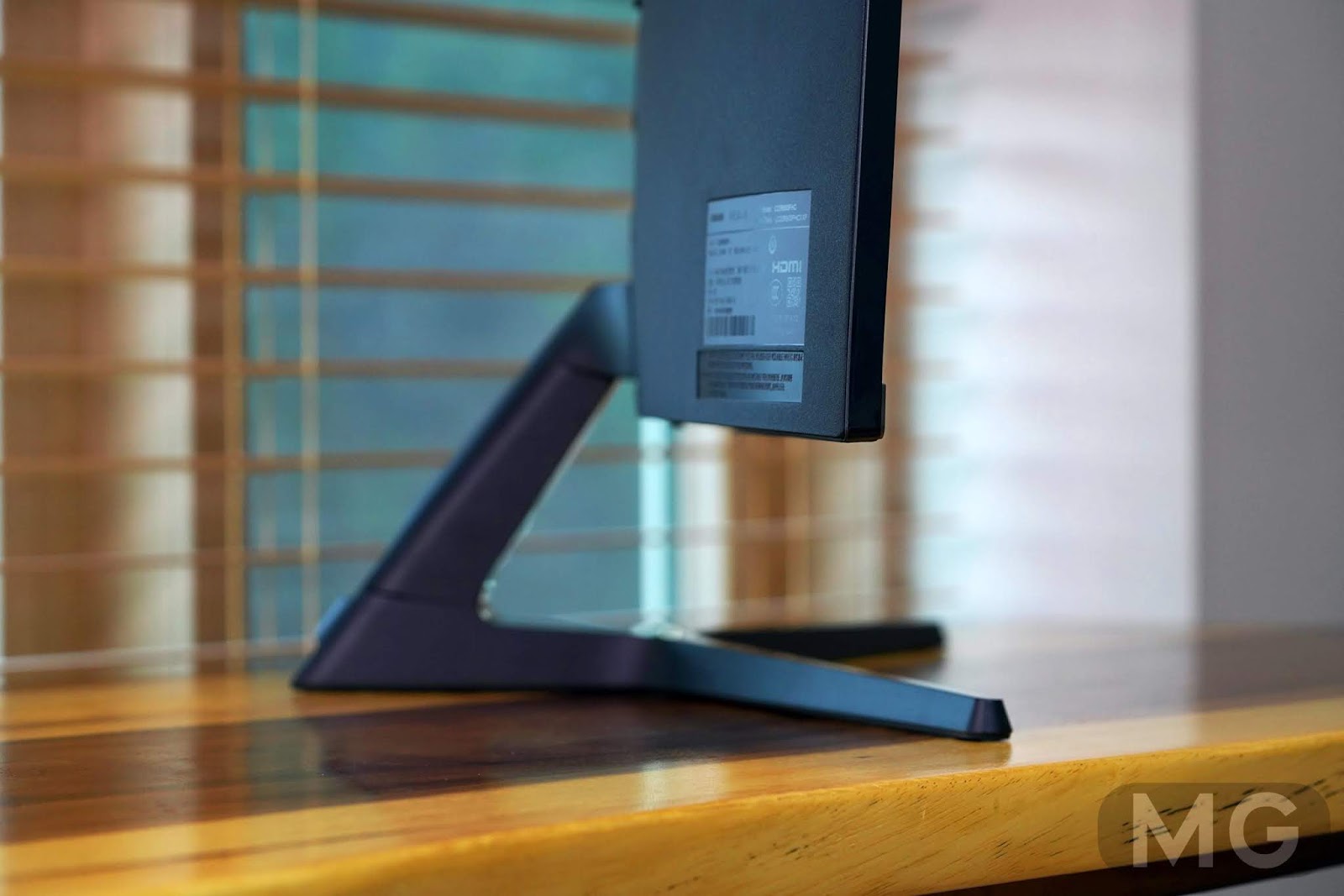 스탠드는 공간을 최소한으로 차지하면서 안정적으로 지지해 주도록 설계되었는데, 이 부분은 글로시 재질이라 먼지가 잘 앉거나 유분이 묻어서 닦아줄 필요가 있더라고요.