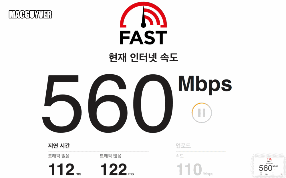 다운로드가 560Mbps가 나왔고, 업로드가 470Mbps까지 나온거죠. 이 속도는 사실상 대용량 파일을 백업하고 영상을 재생하는데 쾌적하다 못해 시원시원한 경험을 하게 해주거든요.