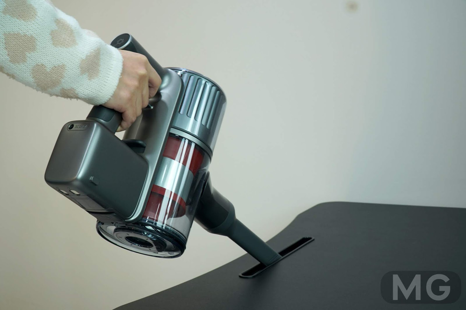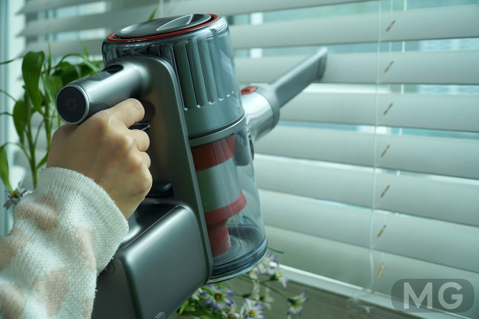 버튼 잠금 기능을 통해 한 손으로도 쉽게 사용이 가능하며, 방아쇠를 놓고도 흡입 청소가 가능하기 때문에 더욱 쉽게 청소기를 사용할 수 있었죠.