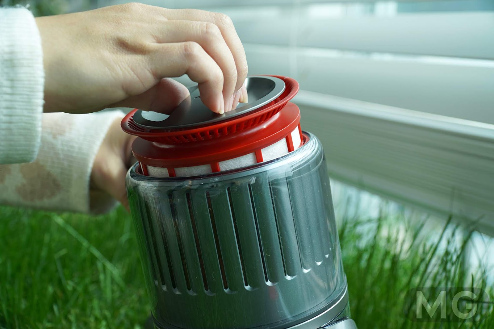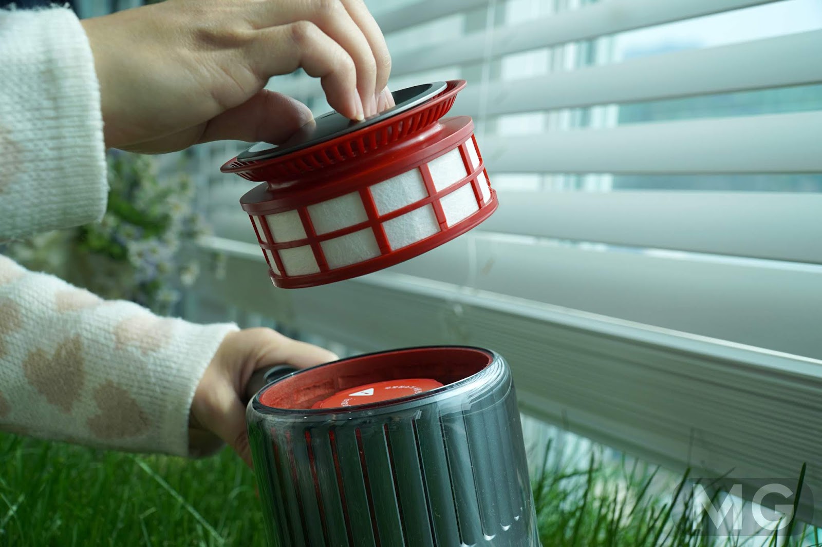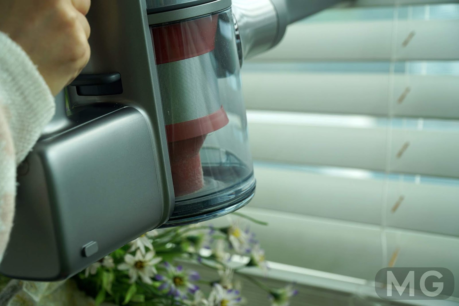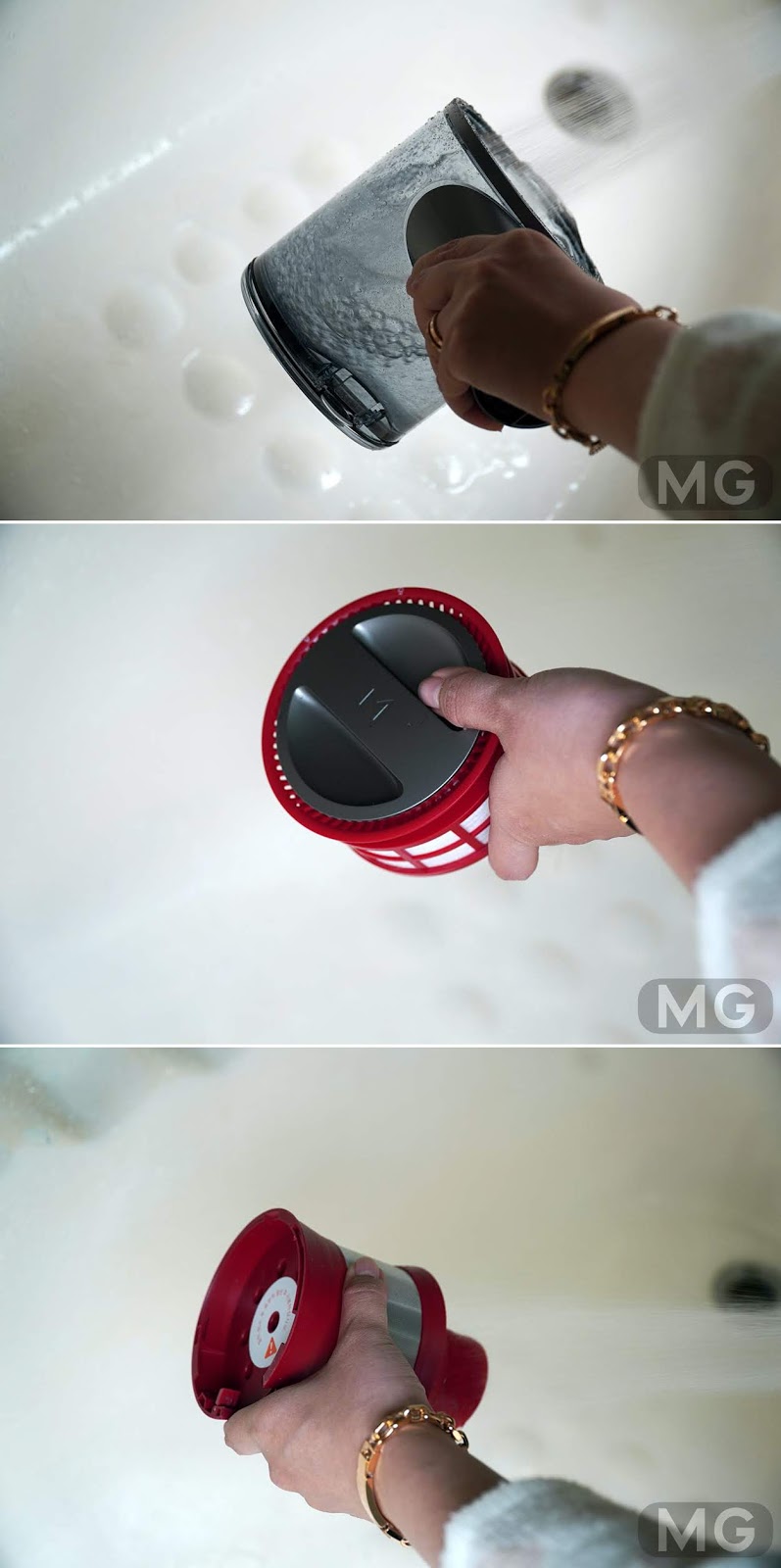 먼지통과 전면 필터, 후면 필터, 멀티 사이클론 부품은 간단하게 분리하여 물 세척이 가능하기 때문에 위생적으로 사용할 수 있는 무선청소기입니다.