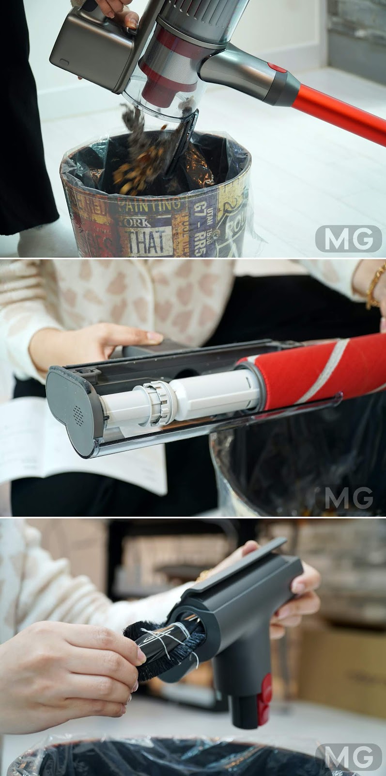 ✎ 손쉽게 먼지통을 비워내고 롤러에 낀 머리카락이나 이물질도 쉽게 청소해 볼 수 있었습니다.