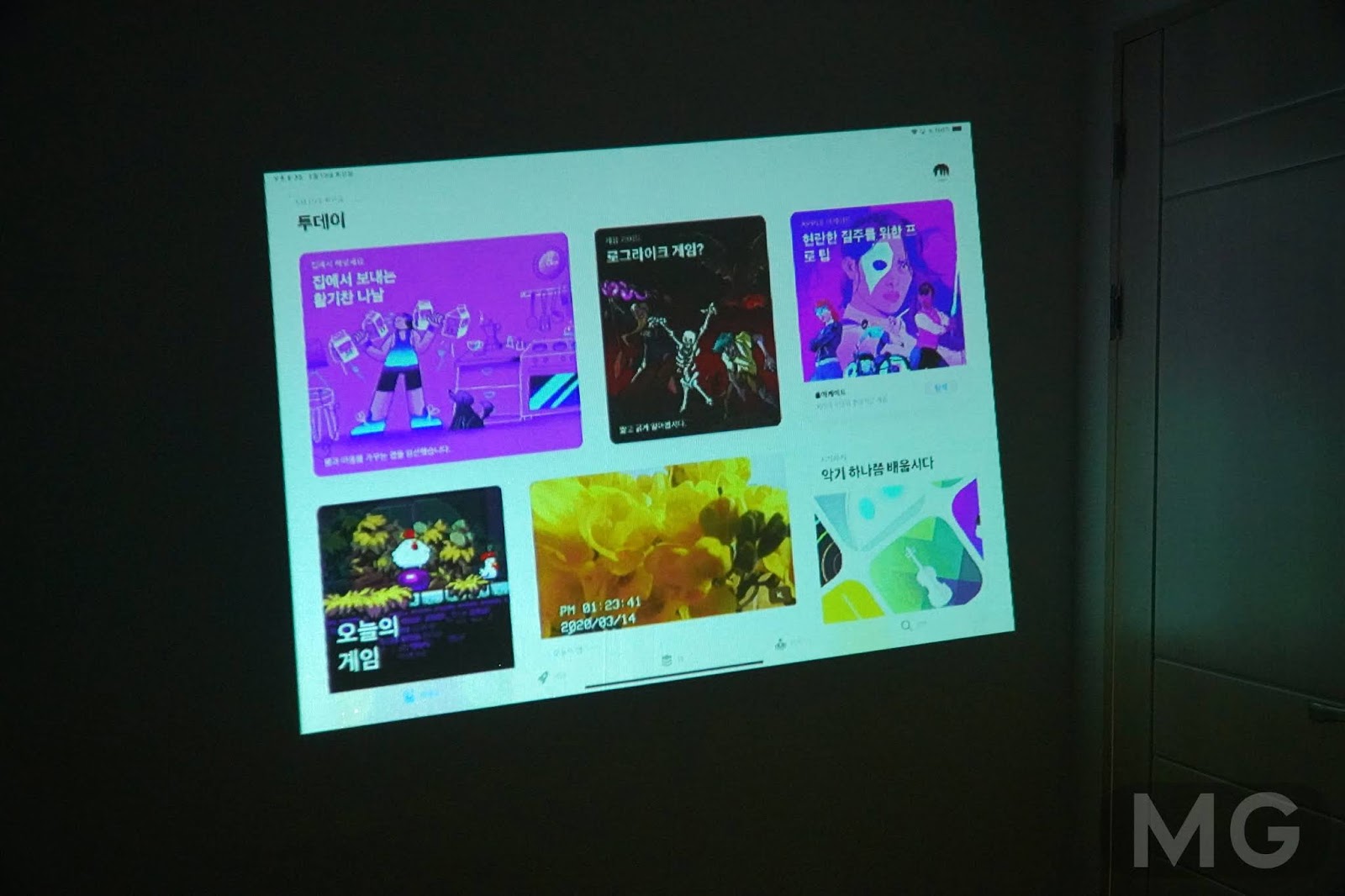 80인치 정도로 세팅해두고, 해가 지기 2시간 전쯤 창문 열고 형광등만 끄고 유튜브를 봤는데요. 영상미 위주의 동영상은 별로지만, 예능이나 내용 위주의 영상은 은근 볼만했어요.