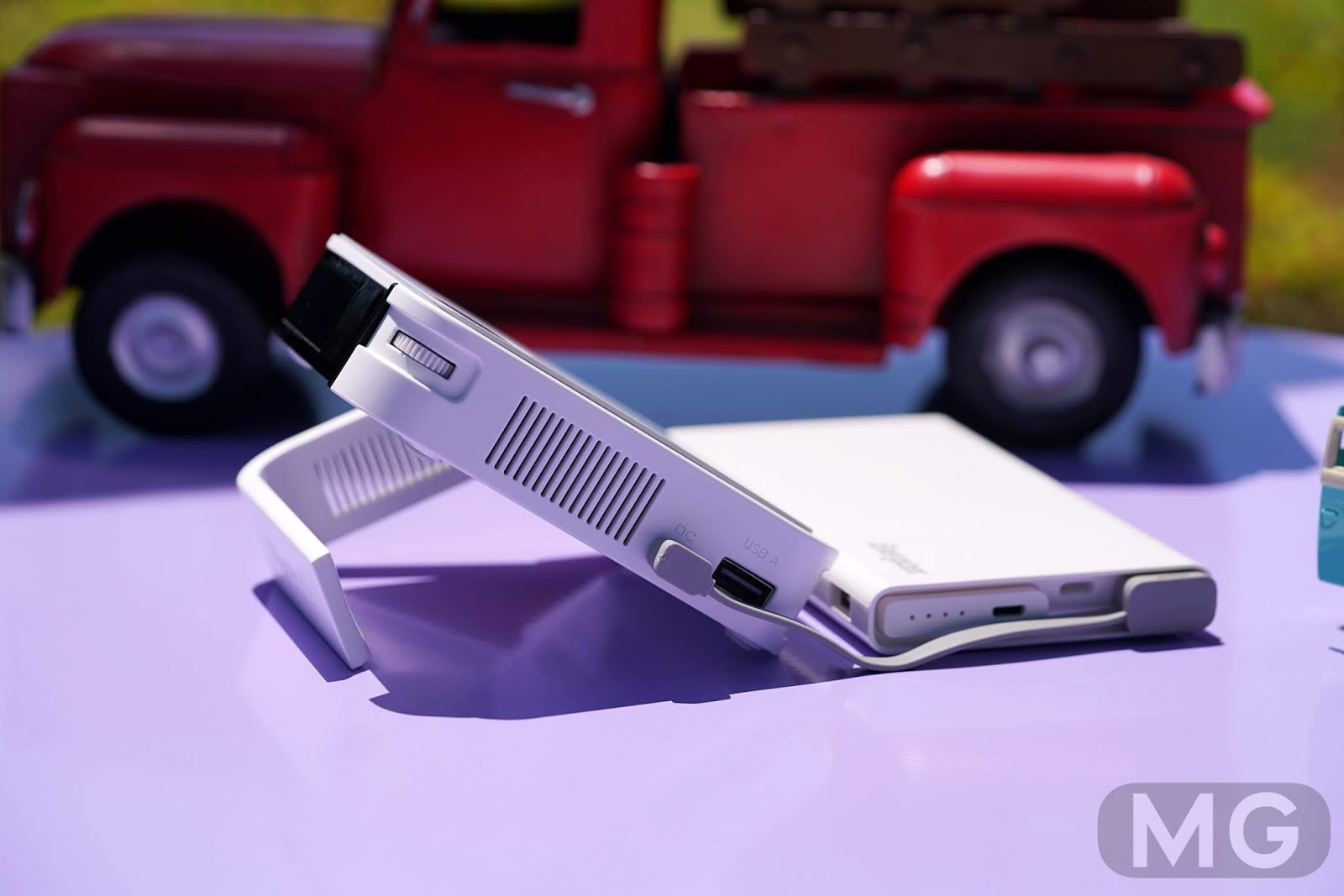 뷰소닉 M1 mini의 꿀기능이 있어요. 거치대 없이 천장을 향해 쏠 수 있습니다. 포트, 송풍구 모두 가리지 않고요.