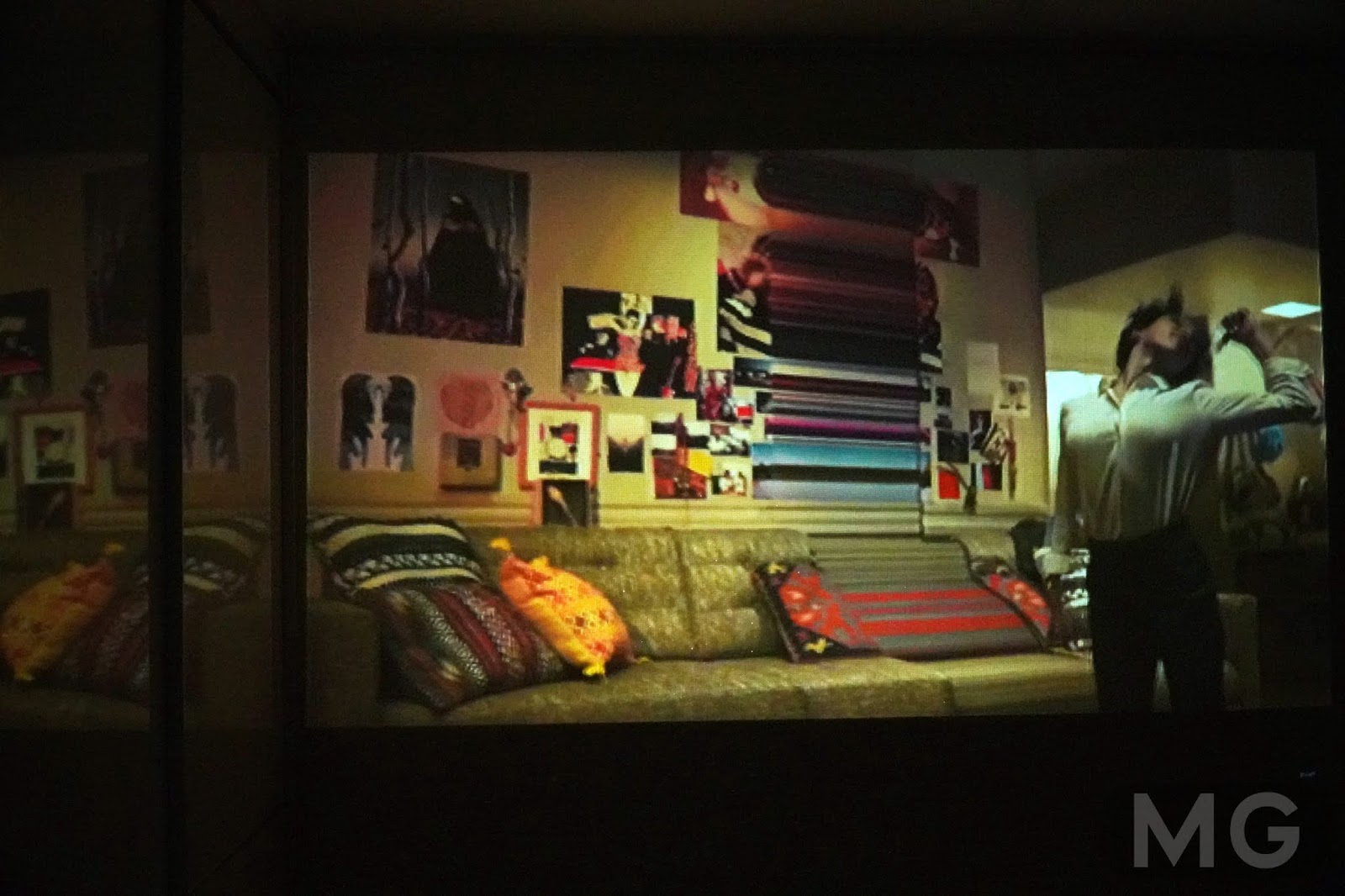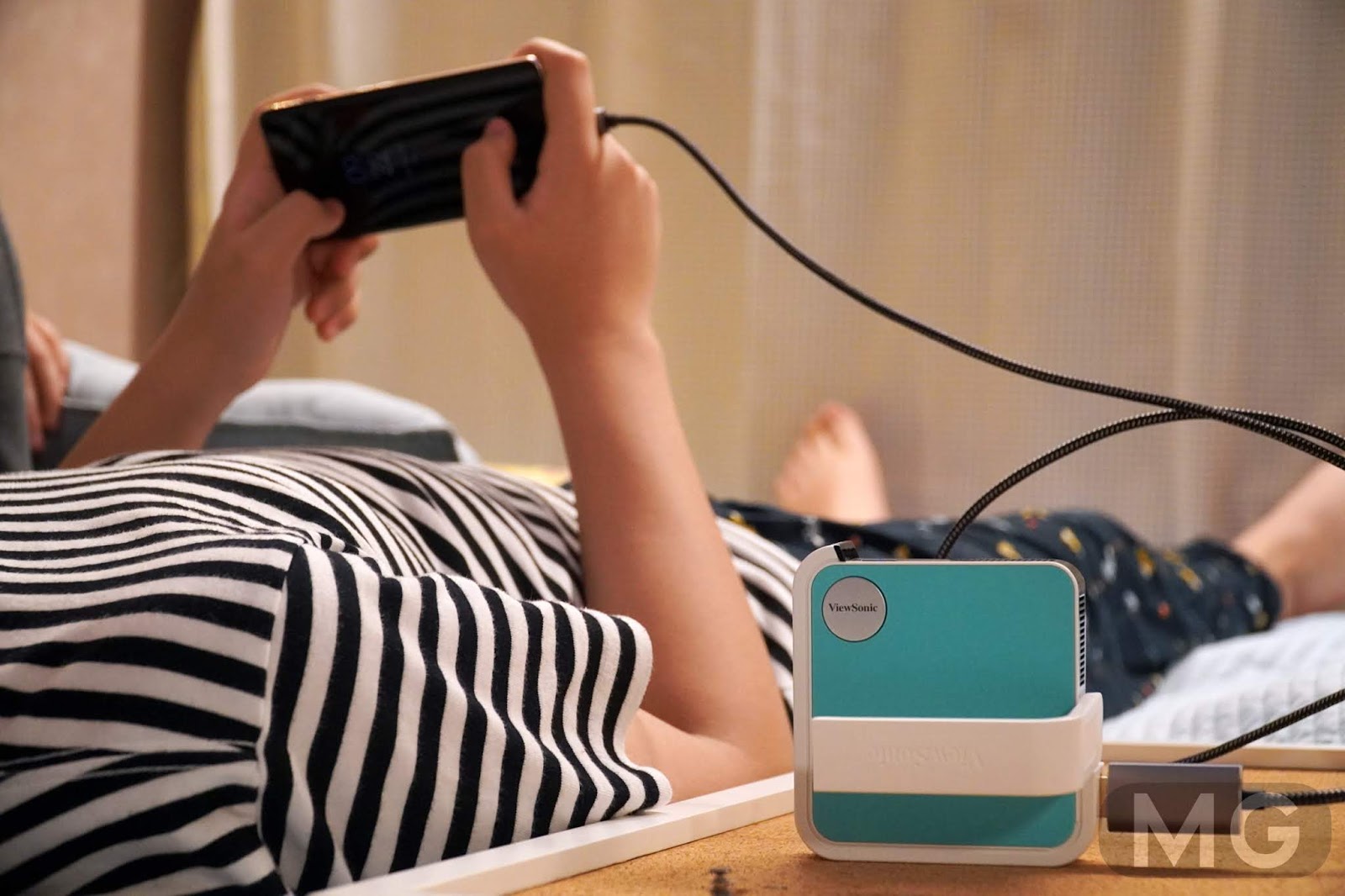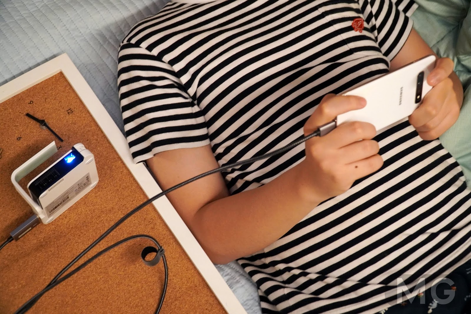영화를 누워서 보는 맛이 또 있죠. 다른 리뷰 보니까, 밤에 스마트폰 화면 대신에 이 프로젝터에 연결해서 본다던데, 폰을 얼굴에 떨어뜨릴 일도 없고 팔도 안무거워서 좋더라고요.