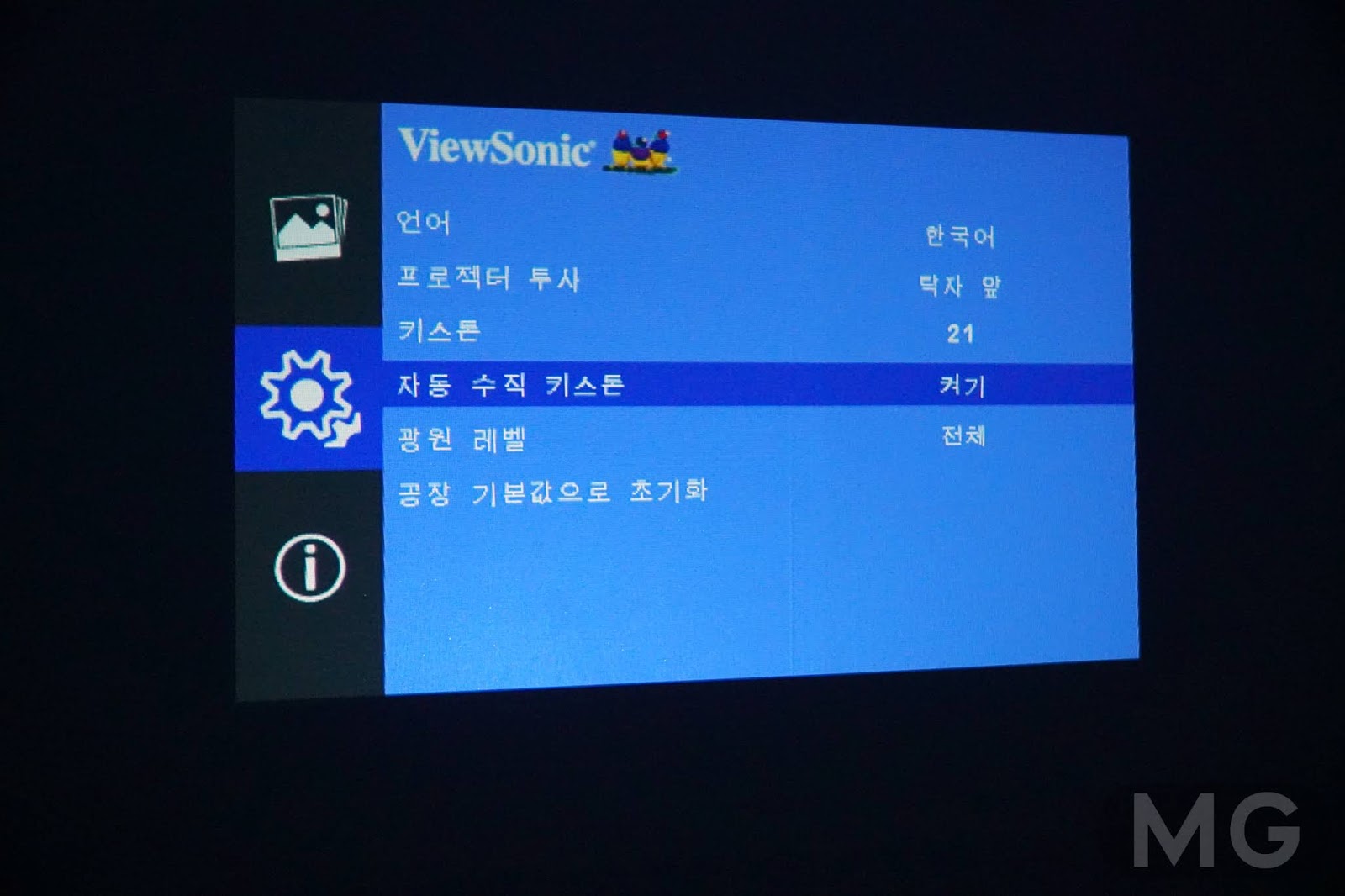 그리고 좌우 키스톤 보정은 안되니까 바닥면 수평이 잘 맞아야 해요. 침대 매트리스위에 올려두면 틀어지기 쉽죠.