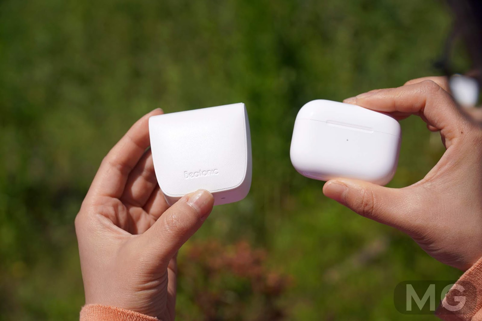 물론 반은 가죽으로 반은 플라스틱처럼 느껴집니다. 크기는 에어팟이나 에어팟 프로 대비 조금 큰 편이고, 주머니에 넣는 건 부드러운데 툭 튀어나오기도 합니다.