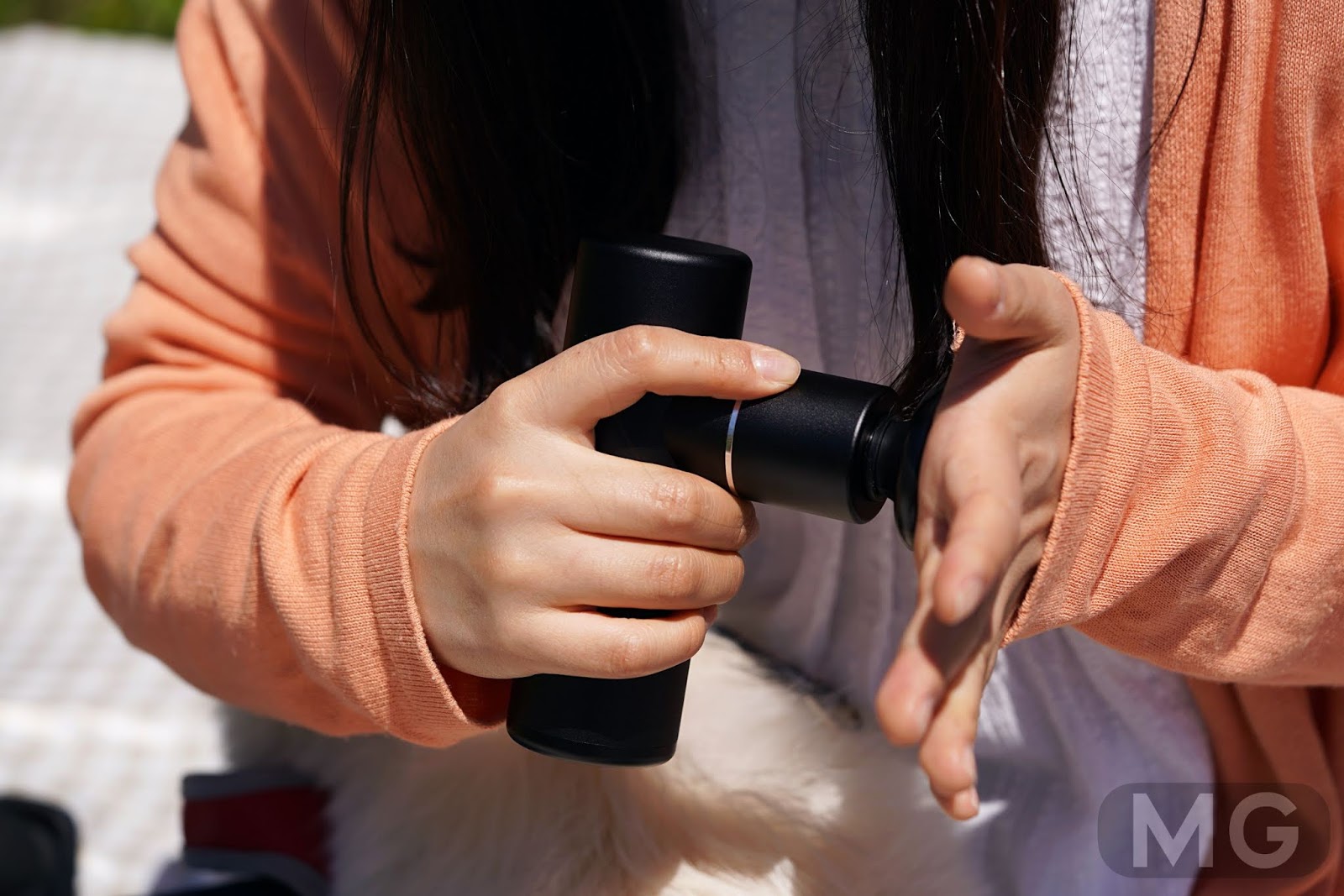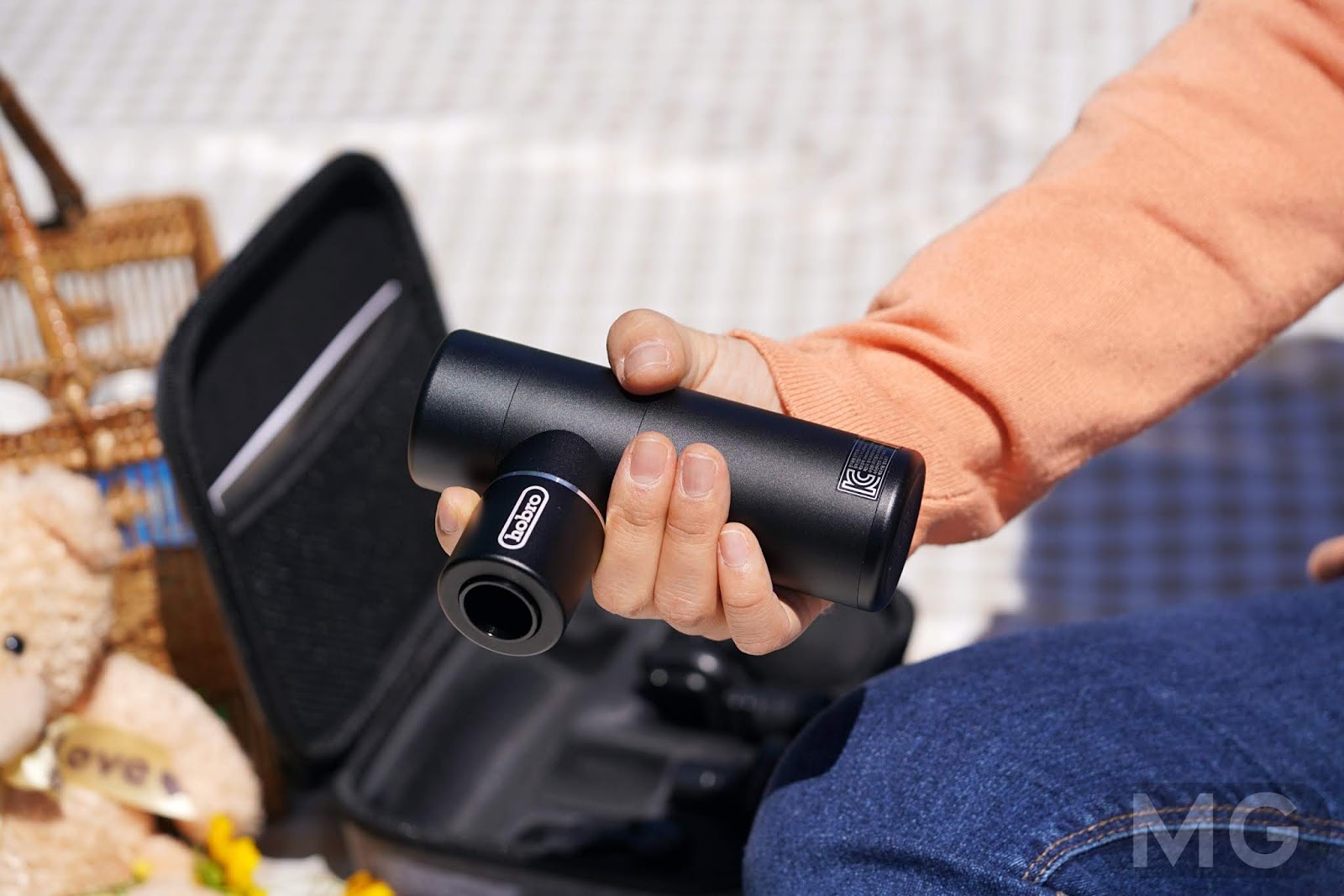 다른 마사지건과 구별되는 가장 큰 포인트는 정말 ‘작다’는 점인데요. 호브로 슈퍼 미니 마사지건는 보기에도 작을 뿐 아니라 손으로 쥐어도 작고 아담했습니다.