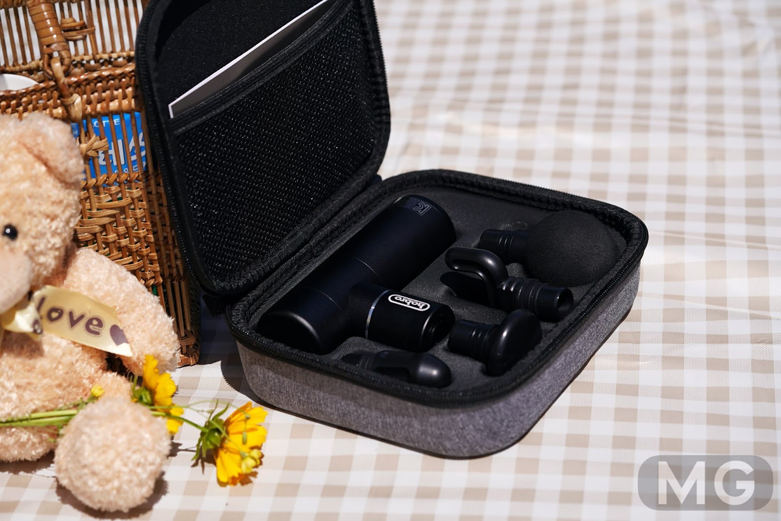 또한 호브로 슈퍼 미니 마사지건이 놀라운 점은 다른 구성까지 알차게 있음에도 파우치가 작다는 점인데요.