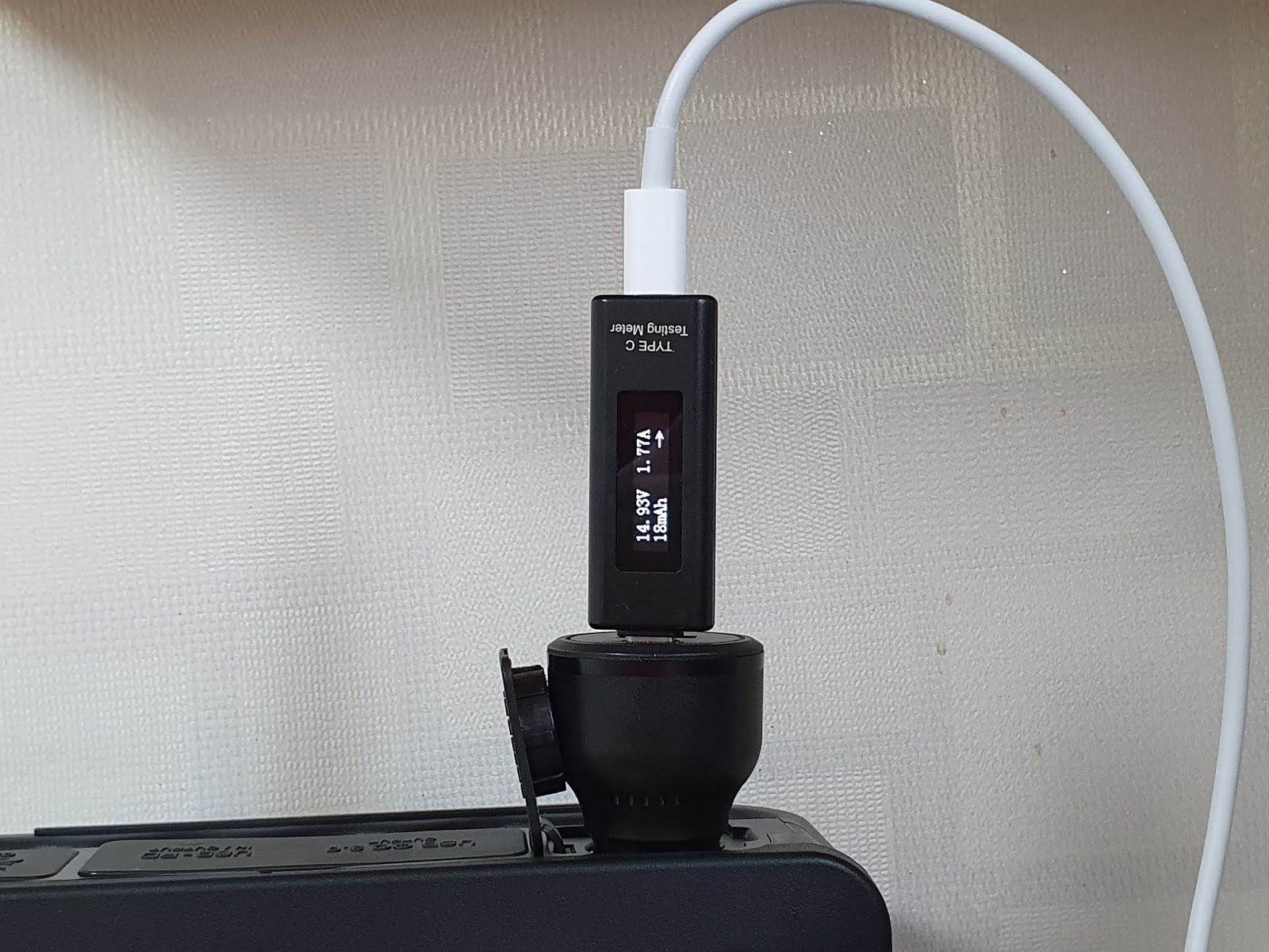 제가 시거잭 보조배터리와 집에 있는 맥북 충전케이블을 활용해서 측정했을 땐, 아이패드 프로를 충전 시 15V / 1.8A 정도로 측정되더라고요. 30W 충전보다 조금 낮은 26W 충전인 건데요.