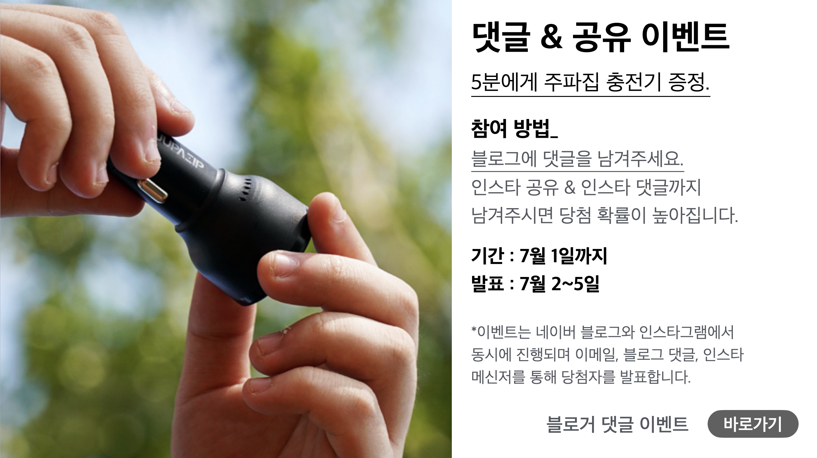 그리고 이 주파집 차량용 고속충전기를 5분에게 증정해드리는 이벤트도 진행되는데요.