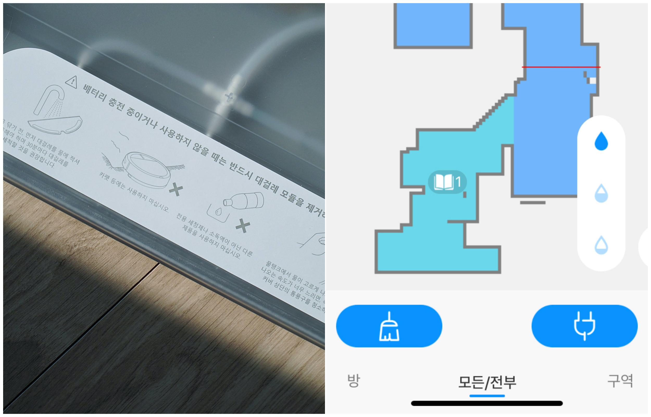 단순히 먼지만 흡입하면 바닥이 깨끗한 정도라면, 물걸레까지 함께 활용하니까 더욱 매끈해지는 거죠.