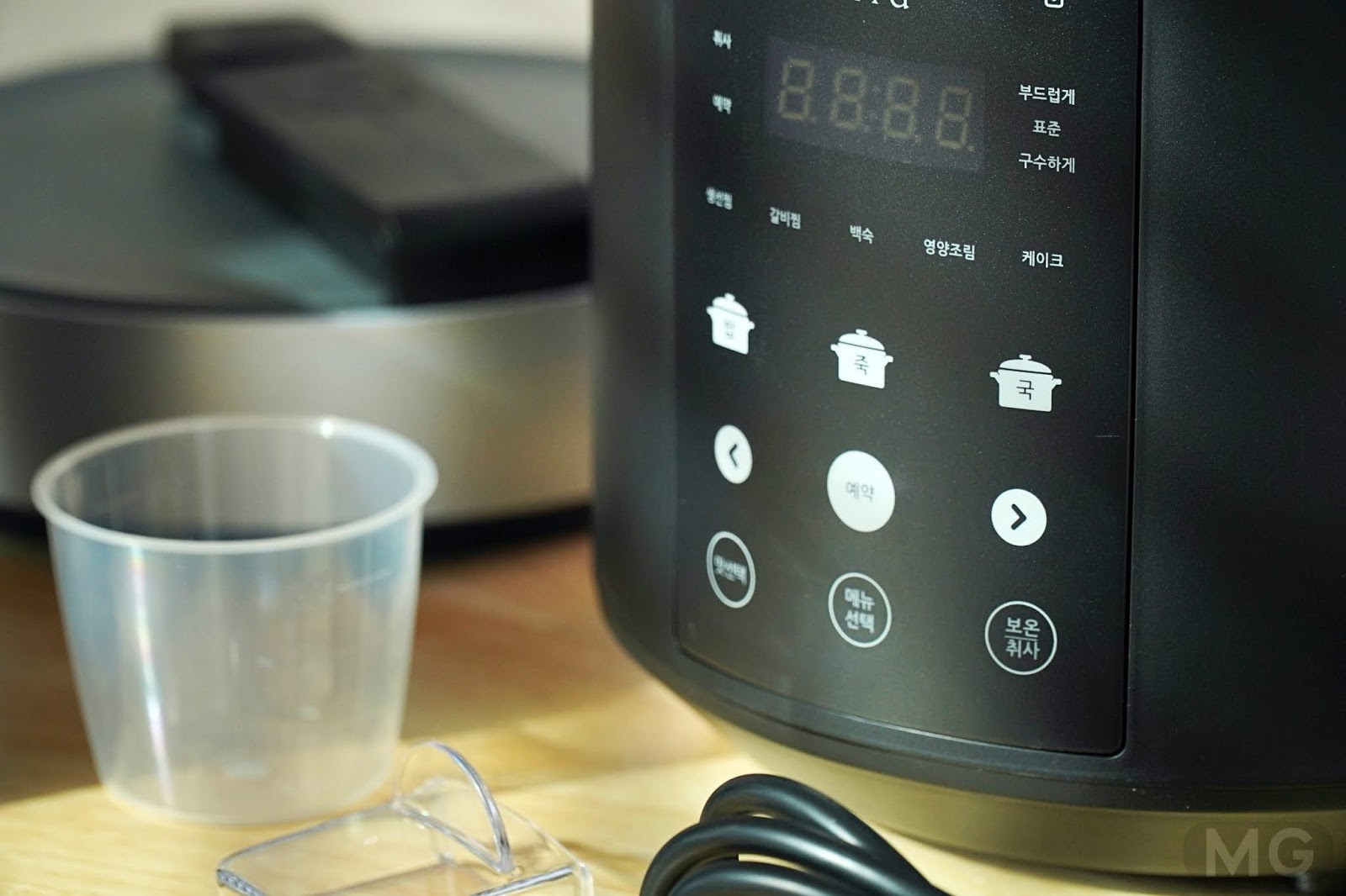 적당한 크기로 1인분부터 3인분까지 밥을 지을 수 있고, 정면 메뉴에서 보이는 것처럼 탕, 조림, 찜, 죽, 케이크까지 조리가 가능하니까 다용도로 활용이 가능했습니다.