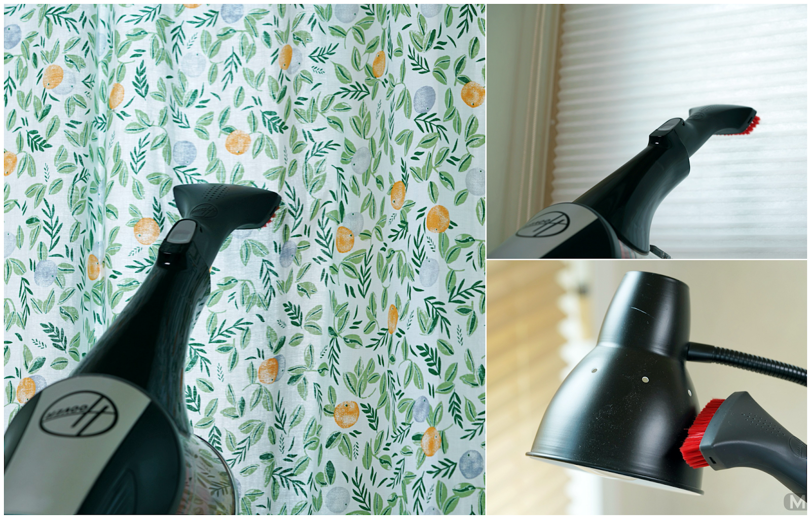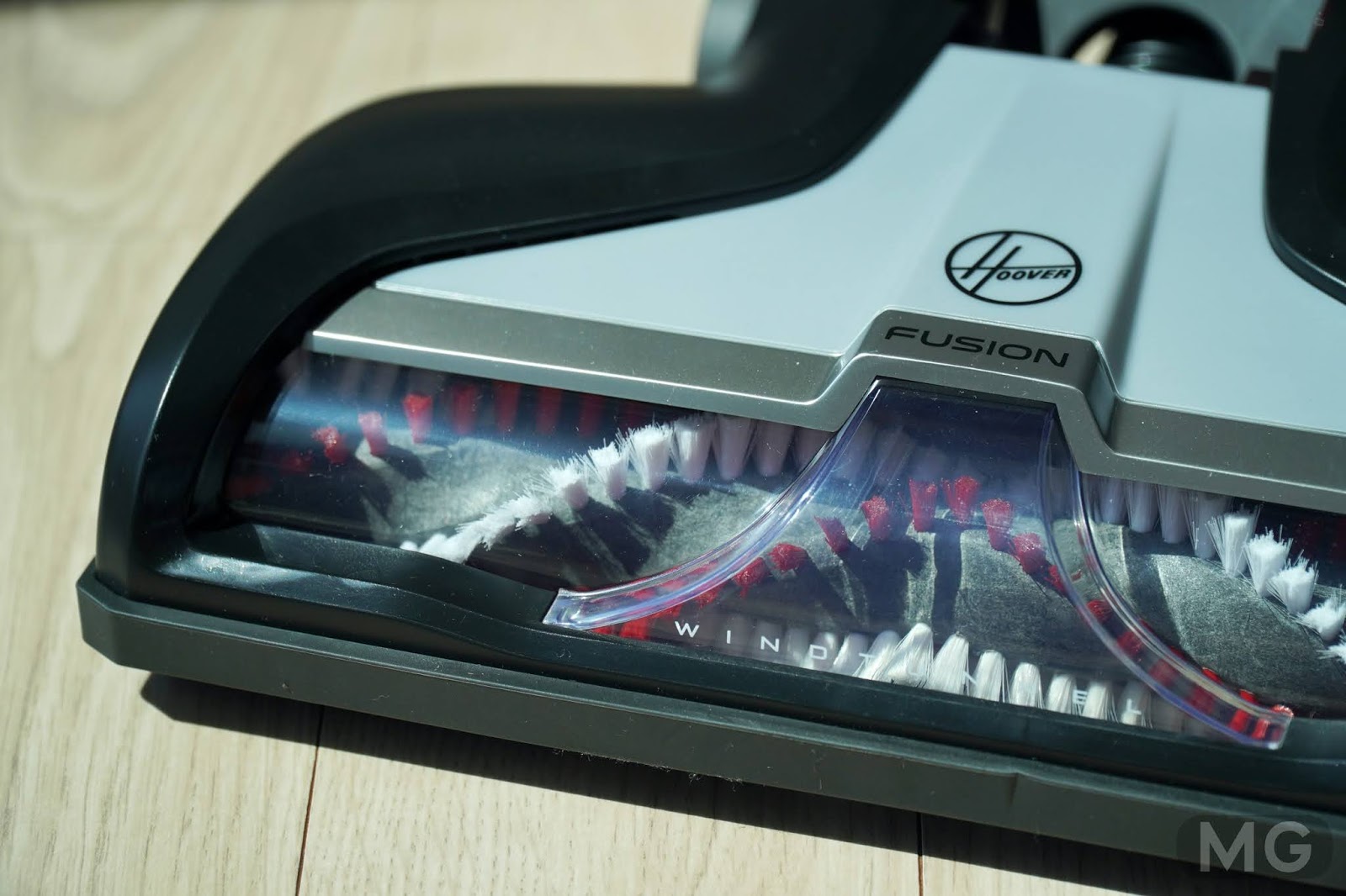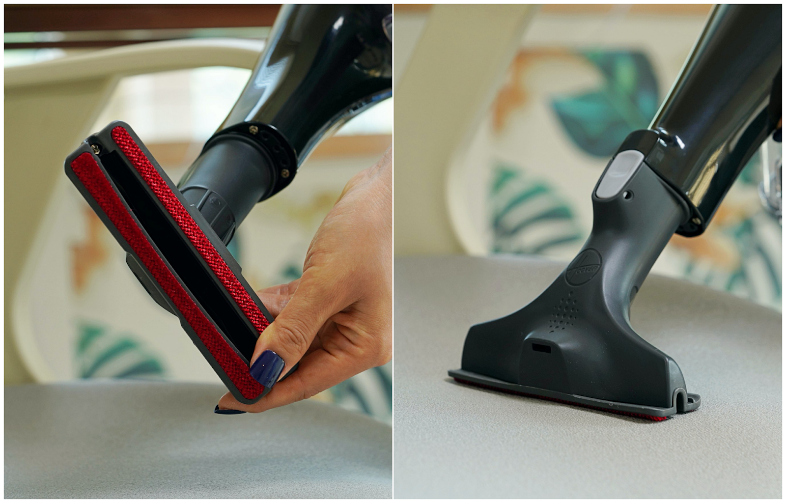 ✎ 후버 퓨전 울트라 청소기의 침구/소파 브러시는 패브릭 소재 위의 먼지를 흡착하며 이물질을 흡입했습니다.