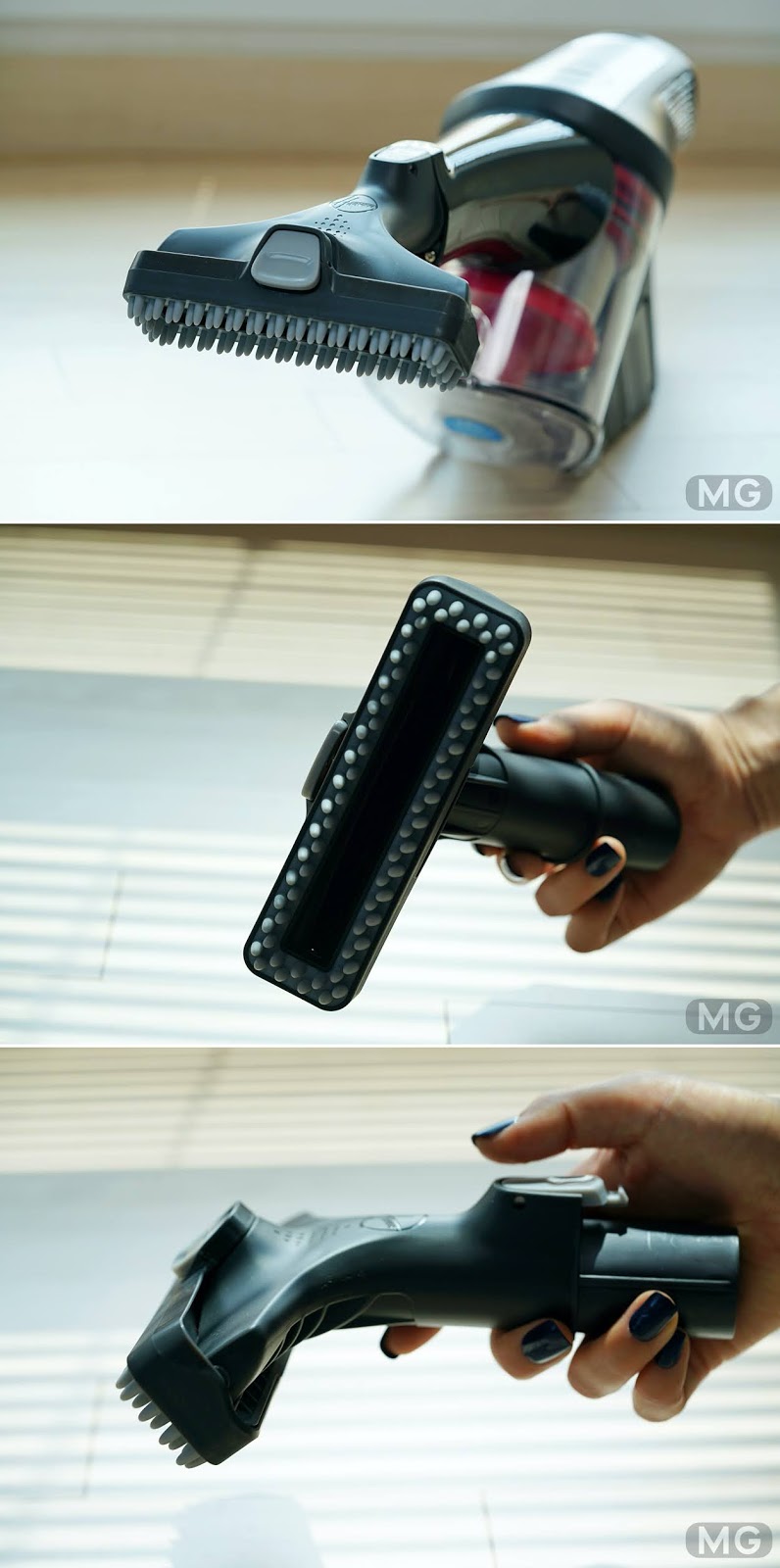 후버 퓨전 울트라 무선 진공청소기와 함께 다양한 툴도 제공되는데요. 틈새, 먼지, 침구 브러시 뿐만 아니라 반려동물 전용 브러시도 제공한다는 점이 인상적이었습니다.