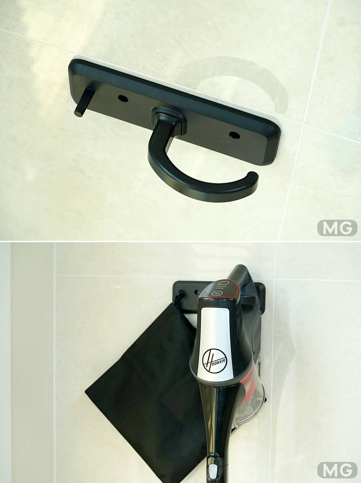 물론 사용하지 않을 때에는 다른 청소기와 마찬가지로 벽에 거치대를 고정해서 거치할 수 있는데요.