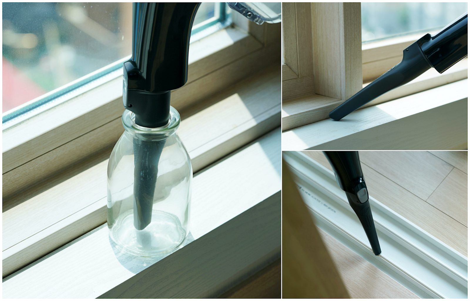 입구가 손가락 크기 만큼 좁아서 활용도가 높았던 틈새 브러시도 유용한 아이템이었는데요. 청소기 툴은 들어가지 않고, 손으로 청소하기에도 어중간했던 사각지대를 편하게 청소할 수 있더라고요.