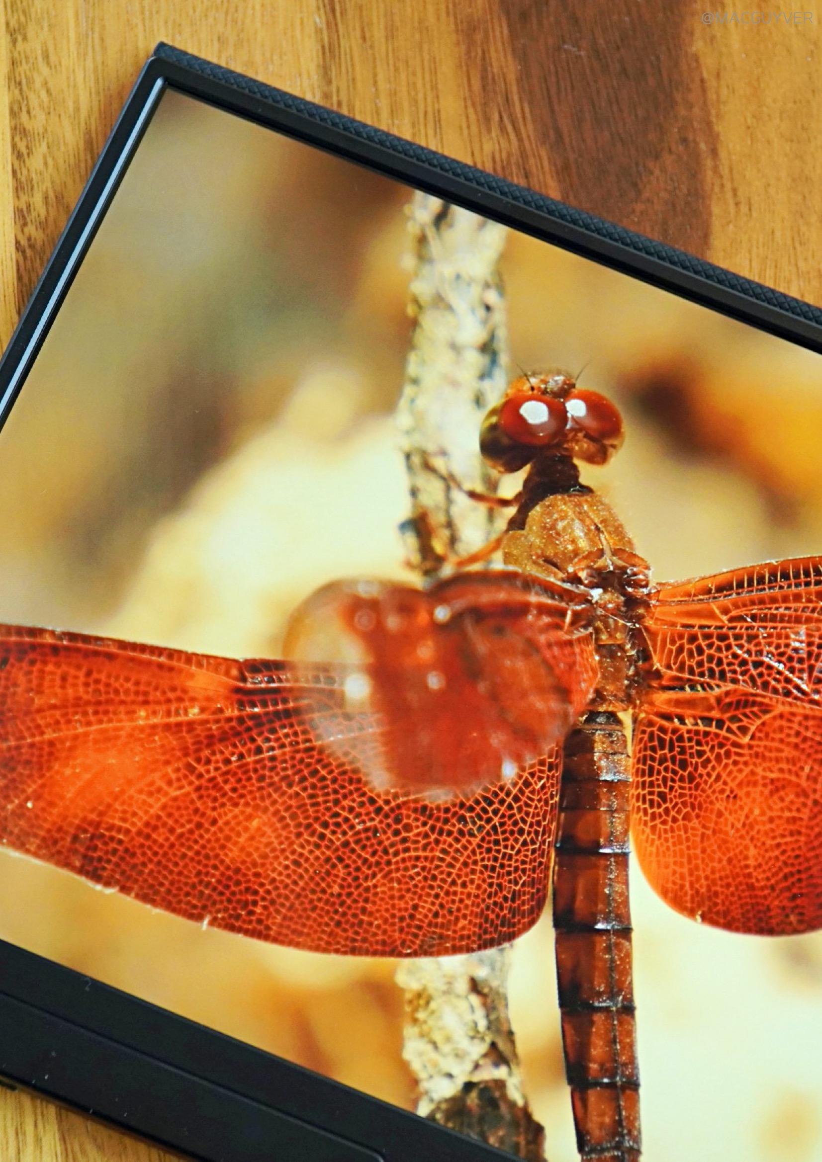 화면 크기는 A4 용지를 기준으로, 가로가 4.8cm 더 넓은 화면을 가졌고 세로는 1.3cm 정도 짧아서 A4 용지보다 살짝 큰 크기라고 이해하시면 쉬울 것 같네요. 미러링 모니터 빛 반사는 제법 있는 편이라 맥북 프로랑 비슷하고, 측면에서도 화면이 잘 보이는 장점이 느껴집니다. 참고로 맥북 프로와 연결해서 원래 해상도 그대로 사용하시면 맥북 모니터 노트북 듀얼 모니터 글자가 정말 깨알같이 보여서 놀라실 것 같아요.