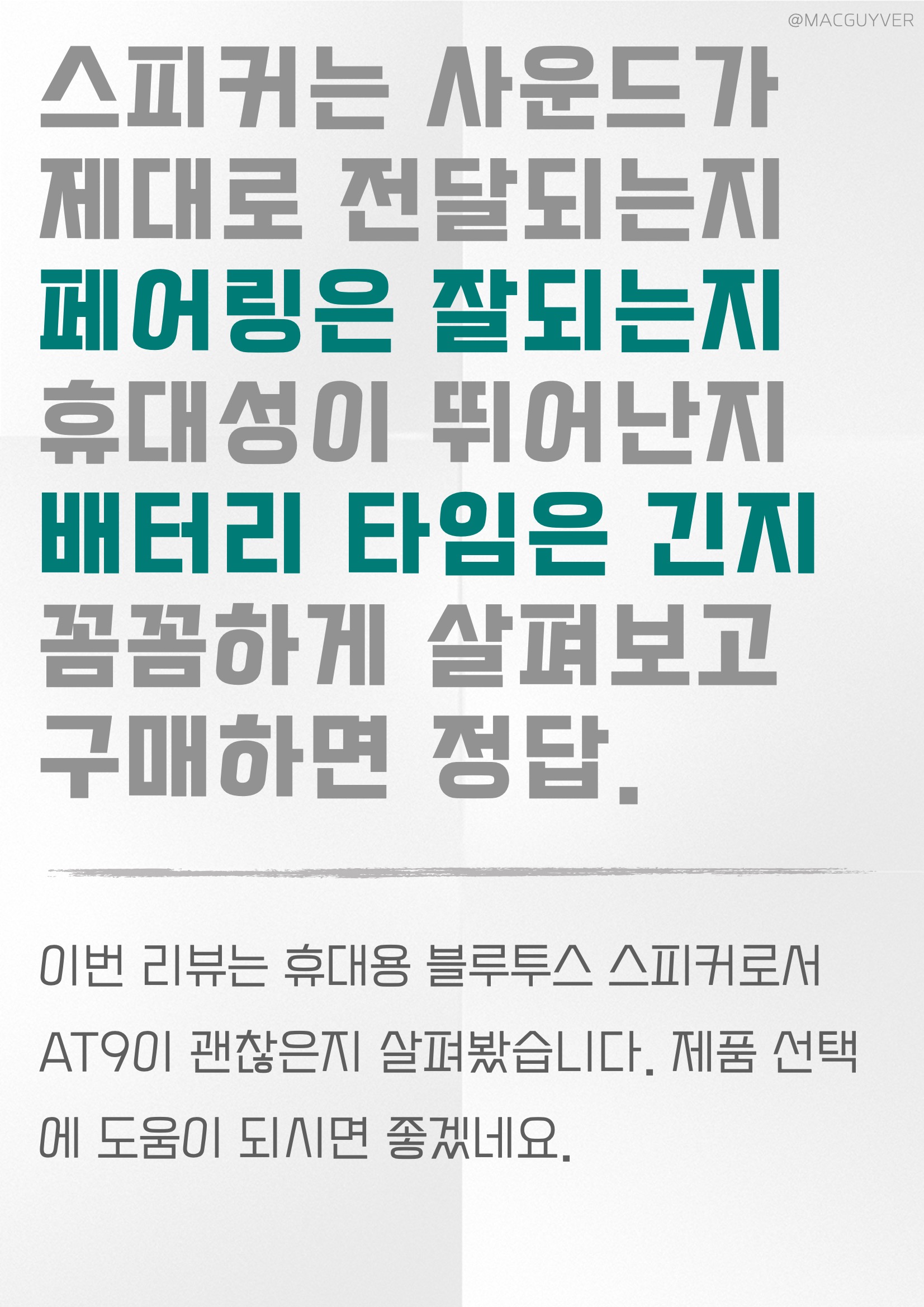 블루투스 스피커는 사운드가 제대로 전달되는지 페어링은 잘되는지 휴대성이 뛰어난지 배터리 타임은 긴지 꼼꼼하게 살펴보고 구매하면 정답. 이번 휴대용 스피커 리뷰는 휴대용 블루투스 스피커로서 AT9이 괜찮은지 살펴봤습니다. 제품 선택에 도움이 되시면 좋겠네요. 에이투 스피커 추천 사용자 음질 괜찮은 스피커를 찾는 분 휴대성 높은 무선 블루투스 스피커를 원하는 분 배터리 오래가는 제품 찾는 분 편리한 조작을 원하시는 분