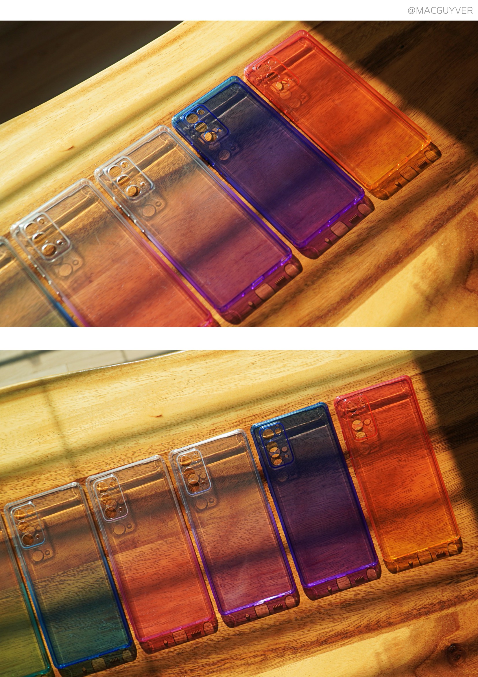 나하로 케이스 블루퍼플 & 핑크옐로우 가장 큰 존재감을 보여주는 블루퍼플과 핑크옐로우는 2가지 투톤 컬러로 완전히 다른 느낌을 전해줬는데요. 블루퍼플은 조금 더 산뜻한 느낌과 함께 밝고 화사한 컬러감을 전해줘서 확실히 보는 맛도 있고 세련된 느낌이 들었습니다. 갤럭시노트20 울트라 케이스 핑크옐로우는 호불호가 있을 것도 같고, 여성분들이 좋아할 것 같은 디자인과 컬러 포인트를 가지고 있더라고요. 갤노트 케이스 때로는 투머치로 보일수도 있고, 때로는 어색한 느낌도 들 것 같은데 실제로 씌워보니까 의외로 잘 어울리기도 하고 너무 과하지 않은 느낌이었습니다. 갤럭시노트20 케이스 화이트블루 & 화이트민트 비슷한 듯 다른 블루와 민트는 푸른색과 녹색이 미묘하게 다른 느낌을 전해줬는데요. 화이트블루는 정말 산뜻하고 깔끔하게 떨어지는 푸른색 컬러였습니다. 나하로 케이스 브론즈에 씌우기에는 둘 다 오묘한 느낌이 들어서 호불호가 있을것도 같지만, 화이트에 씌우면 기대 이상으로 일체감이나 세련된 느낌이 들어서 만족스럽더라고요. 갤노트20 케이스 화이트블루와 화이트민트 모두 상단부는 원래 폰의 컬러를 살려주도록 투명하게 되어 있고, 갤럭시노트20 그라데이션 케이스 하단부로 갈수록 자연스럽게 퍼지는 컬러감으로 믹스매치를 보여줬는데요. 요즘 트랜드인 투톤 컬러를 제대로 보여주고 싶은 분들에게 괜찮은 선택지가 아닐까 합니다.