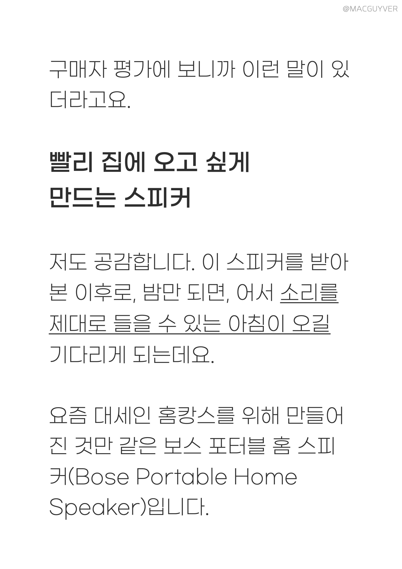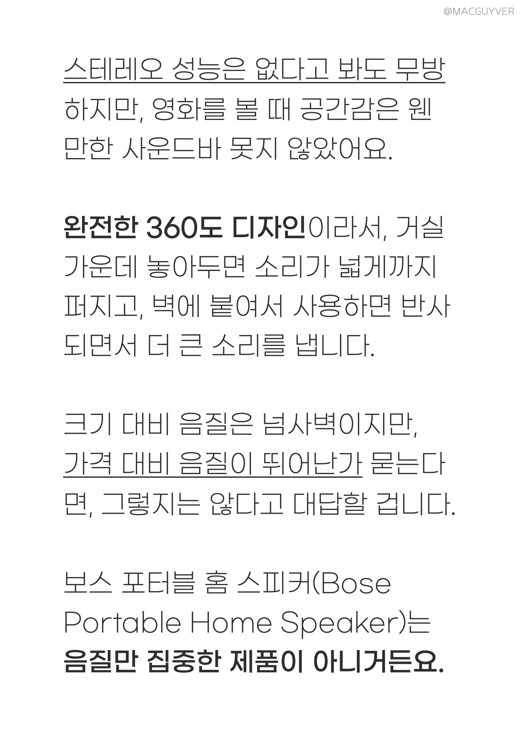 맥가이버의 보이는 리뷰 | 보스 포터블 홈 스피커의 사운드는 어땠을지 실제 녹음 사운드를 담아봤습니다.