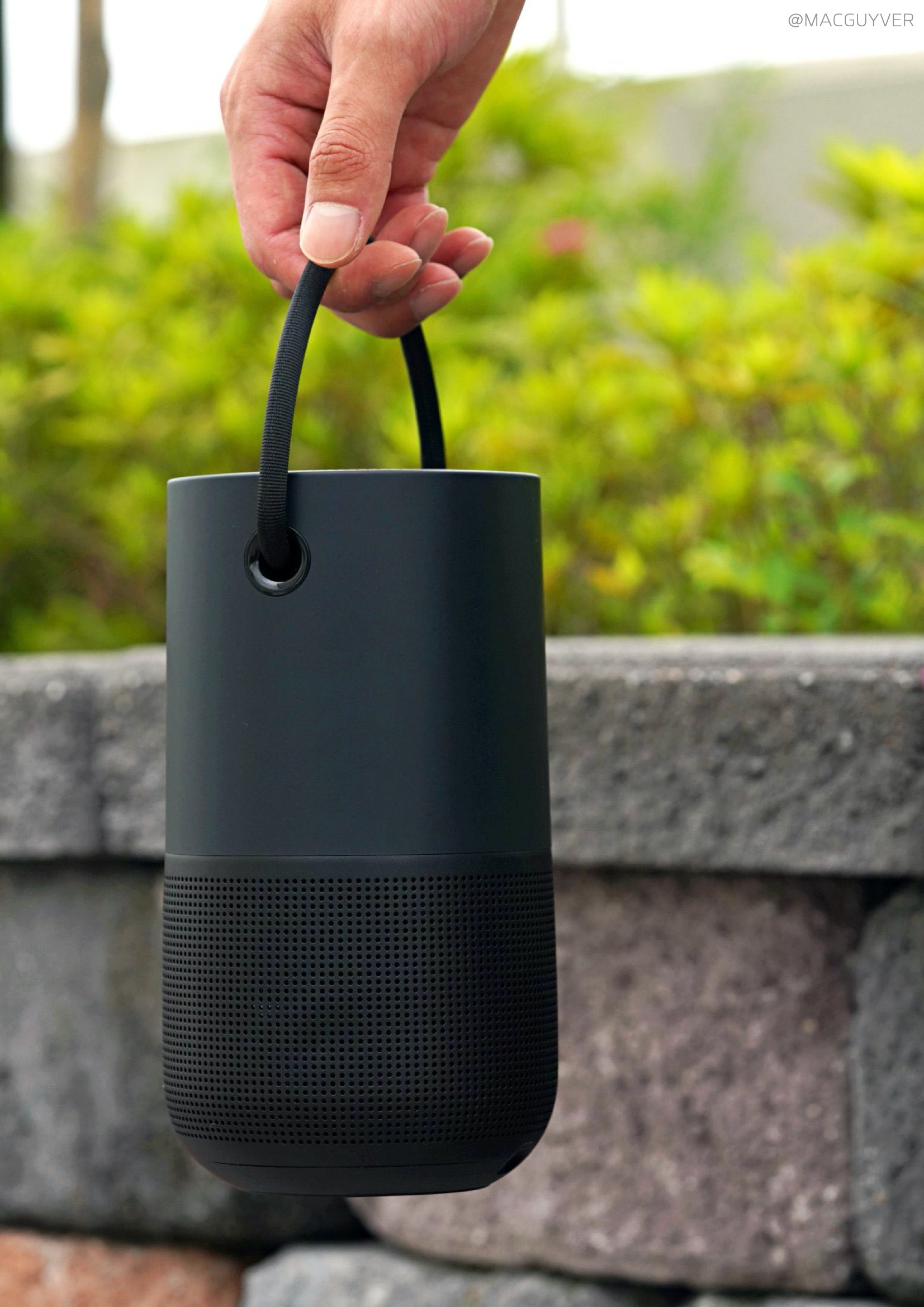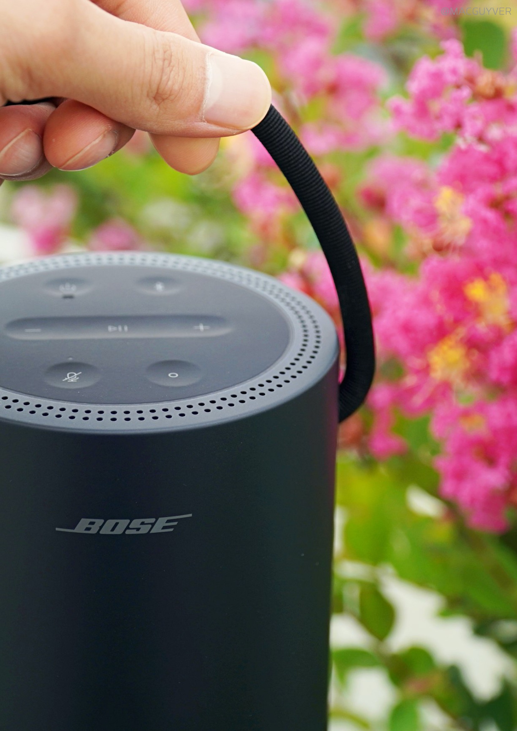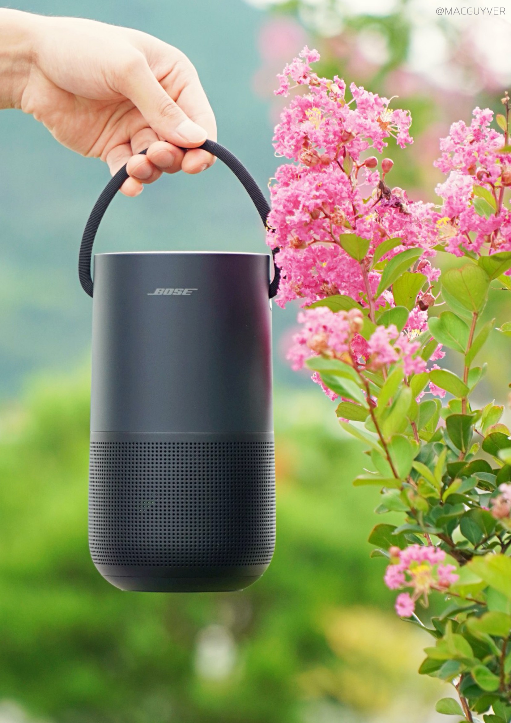 Bose 사운드 스펙_ :: 고효율, 고출력 트랜스듀서가 아래쪽 어쿠스틱 디플렉터로 향해 ‘360도 전 방향으로 균일하고 풍부한 사운드’ 실현 :: 오디오 성능을 최대로 발휘하도록 정교하게 제작된 이음새 없는 양극 산화 처리된 알루미늄 외관에 쌓여진 원통형 디자인 :: 블루투스스피커추천 세 개의 수동 라디에이터로 진동 표면적을 증가시켜 깊이 있는 베이스 전달 휴대성 이름은 ‘홈’인데 휴대성이 왜이렇게 좋을까 생각해봤는데요. 보통 이정도 소리를 낼 수 있는 스피커는 집에서 이곳저곳으로 들고 다닐 수가 없죠. 음악을 듣기 위해 내가 스피커가 있는 방으로 가는 게 아니라, 내가 가는 곳마다 고음질 사운드를 들을 수 있게 해주겠다는 컨셉인 것 같아요. Bose Portable Home Speaker 홈캉스에 적합한 디자인인거죠. 보스 포터블 홈스피커 규격 : 191x120x104mm / Bose 약 1kg 디자인 : 튼튼한 손잡이 스트랩 방수 : IPX4 외부 충격 견딜 수 있게 설계 스트랩을 손에 걸면 양손에 물건을 더 들 수도 있으니까, 잠깐 자리를 이동할 때도 폰과 함께 혹은 포터블 홈스피커만 들고 다니게 되더라고요. 보스 포터블 홈스피커 하단에 실리콘처리가 되어 있고, IPX4 기본 방수도 지원하니까 야외에서 사용할 땐 더 만족도가 높았습니다.