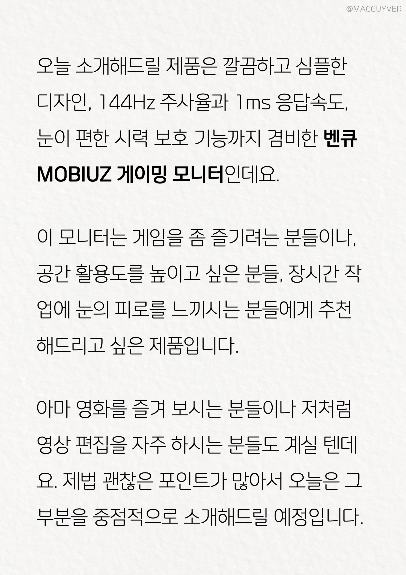 오늘 소개해드린 벤큐 MOBIUZ 게이밍 모니터는 144Hz모니터, 27형 FHD 해상도로 게이밍에 최적화된, 그러면서도 영화나 영상 편집, 문서 작업을 하기에도 괜찮은 제품이었습니다. 27인치모니터 단순히 보여주기만 하는 모니터가 아니라 사용자에 맞출 수 있고, 제대로 된 사운드와 시력 보호 기능까지 지원하니까 벤큐모니터 장점이 제법 쏠쏠해 보입니다. 벤큐모니터에 대한 보다 상세한 정보와 또 다른 구매 후기가 궁금하신 분들은 아래 배너를 통해 알아보시기 바랍니다.